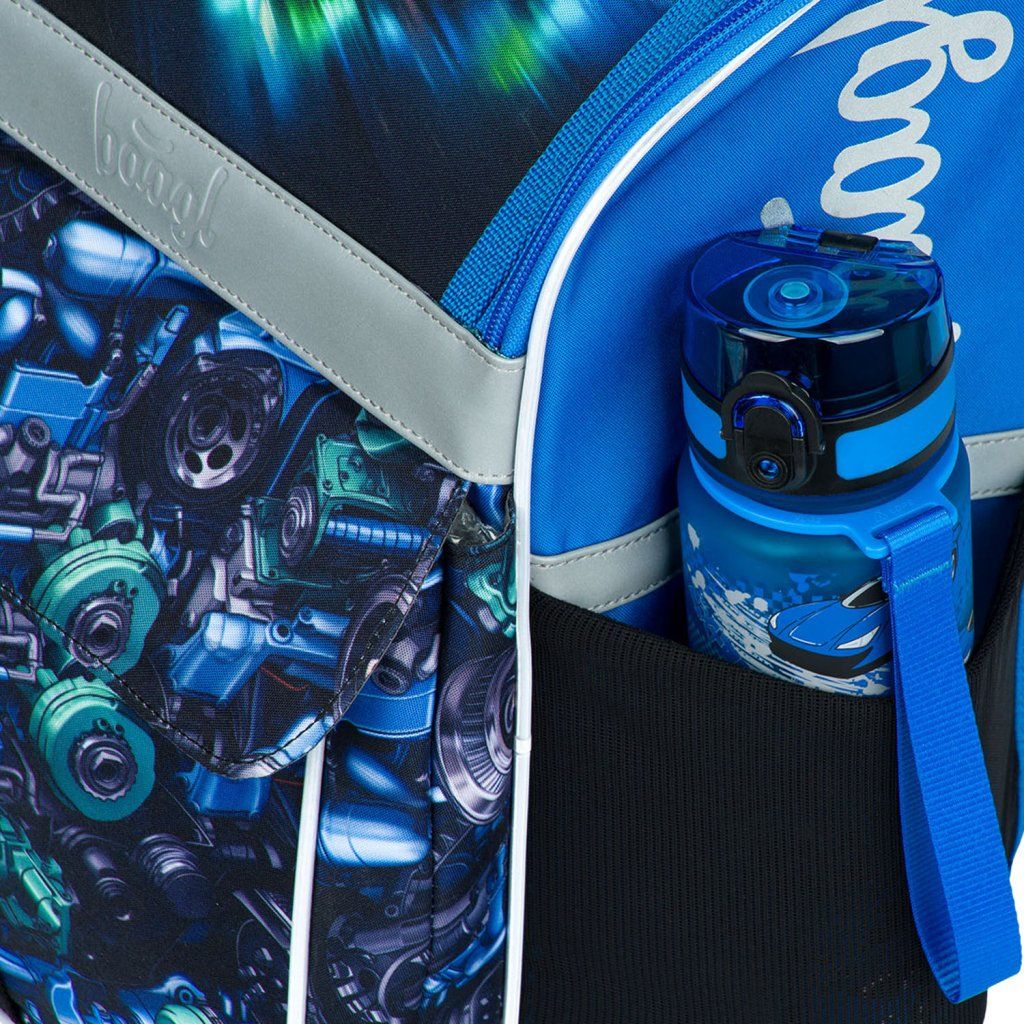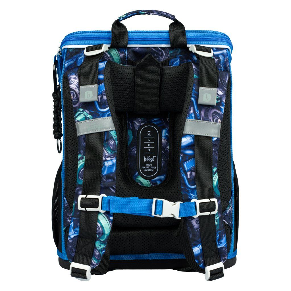 Vnitřní organizér: V aktovce je integrován průhledný organizér na rozvrh hodin a další kapsa s gumičkou pro fixaci věcí, které zajišťuje rovnoměrné rozložení hmotnosti uvnitř.