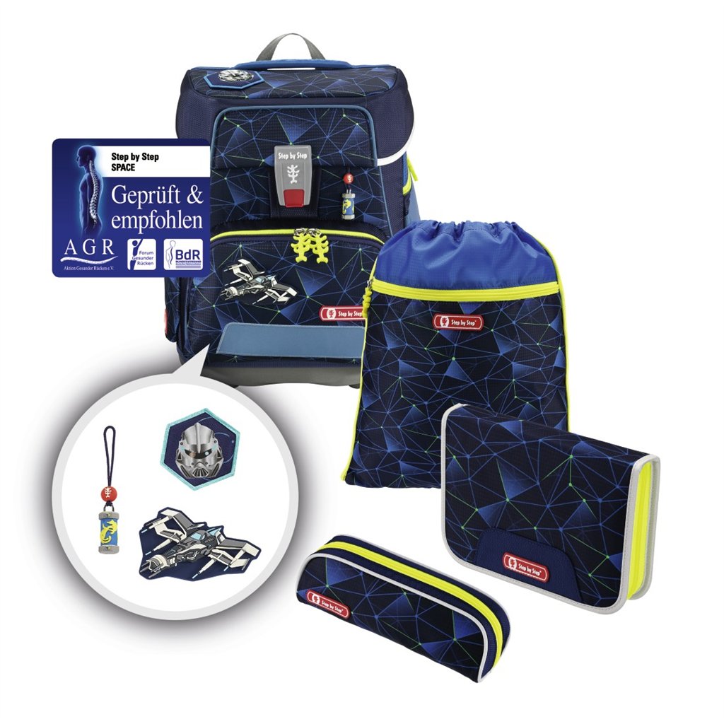 Školní aktovka e- Space-5-dílný set, Step by Step s elektronicky nastavitelným bederákem, Vesmír