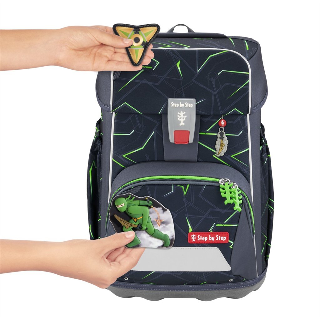 Školní batoh Step by Step GIANT 5dílný set je ideálním řešením pro děti od 1. do 4. třídy, které potřebují prostorný a funkční batoh. Tento set obsahuje vše potřebné: batoh, plný penál, pouzdro, pytlík na cvičební úbor nebo přezůvky a vyměnitelné 3D obrázky MAGIC MAGS, které umožňují dětem přizpůsobit si batoh podle vlastního vkusu.
