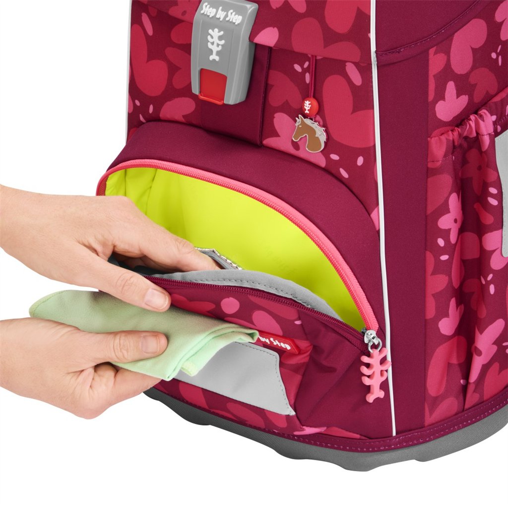 Školní batoh Step by Step GIANT 5dílný set je ideálním řešením pro děti od 1. do 4. třídy, které potřebují prostorný a funkční batoh. Tento set obsahuje vše potřebné: batoh, plný penál, pouzdro, pytlík na cvičební úbor nebo přezůvky a vyměnitelné 3D obrázky MAGIC MAGS, které umožňují dětem přizpůsobit si batoh podle vlastního vkusu.