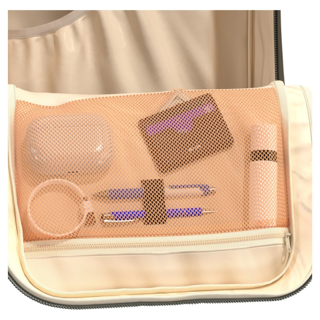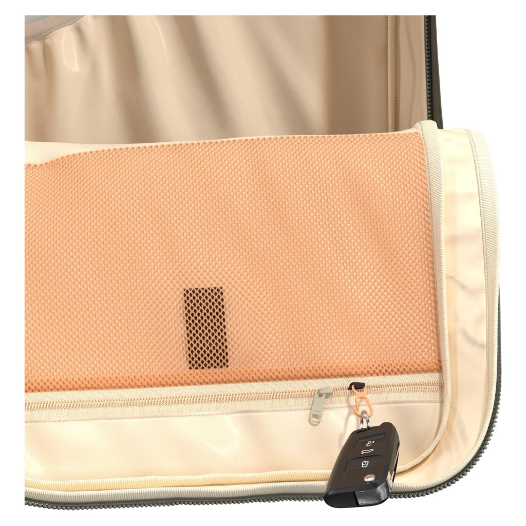 Praktické zadní ucho umožňuje snadné nasunutí na madlo kufru.