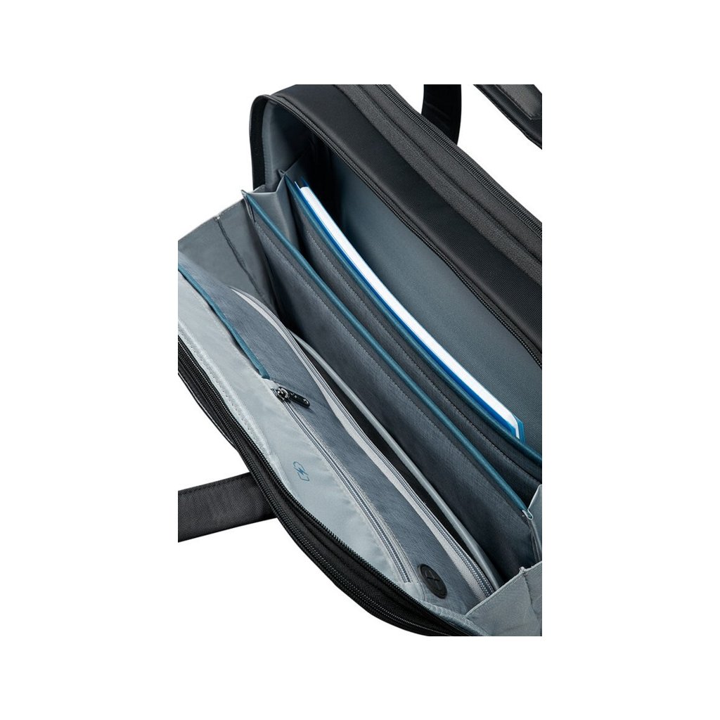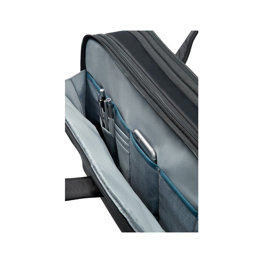 Taška na notebook BAILHANDLE 15,6" EXP. z kolekce SPECTROLITE 2.0 má z pření strany kapsu na zip. Brašna je rozdělena do tří samostatných částí. V jedné jsou menší kapsy /organizér/ + kapsa na zip se síťovinou. Ve druhé dvě přihrádky např. na dokumenty + dvě kapsy na zip na příslušenství k notebooku. Ve třetí části je polstrovaná nastavitelná přihrádka na notebook a přihrádka na tablet. Tato část brašny se dá celá otevřít a má uzamykatelný zip. Na zadní straně je smart sleeve.