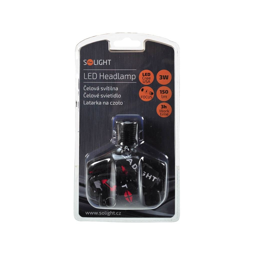 Solight čelová LED svítilna, 3W Cree LED, černočervená, 3 x AAA