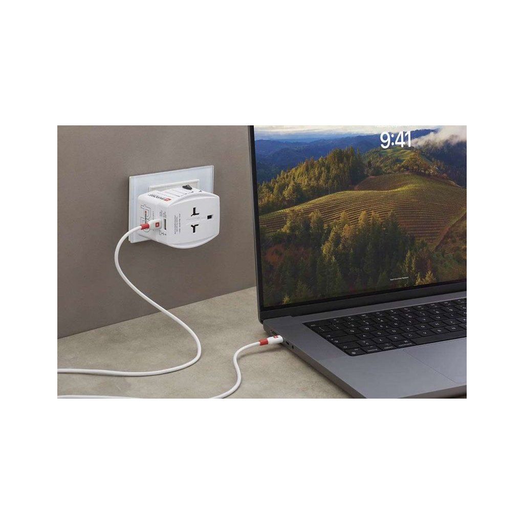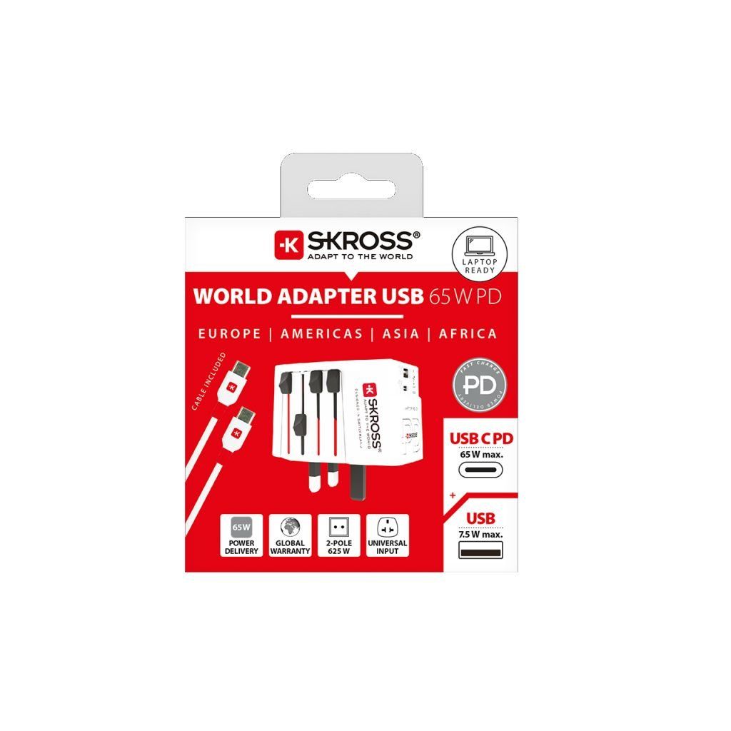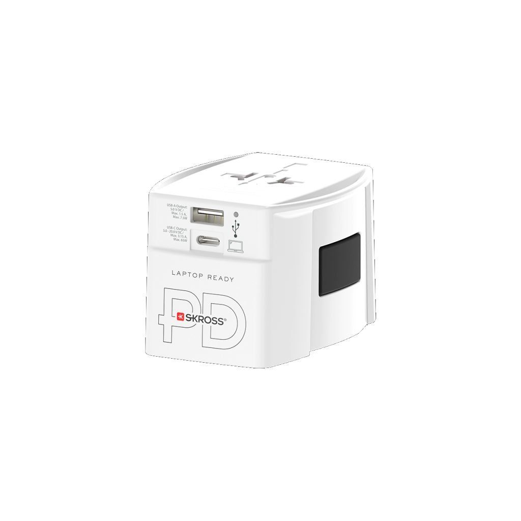 SKROSS MUV USB AC65PD umožňuje bezpečné připojení elektronických zařízení ve více než 220 destinacích po celém světě. Díky integrované rychlonabíječce s porty USB-C a USB-A můžete současně napájet notebook, telefon, tablet, powerbanku nebo jiná zařízení. Navíc nemusíte pořizovat USB-C kabel, je přibalen k adaptéru.