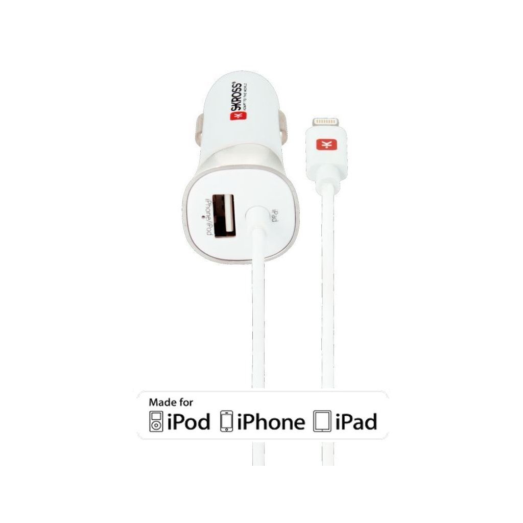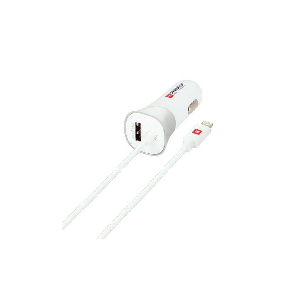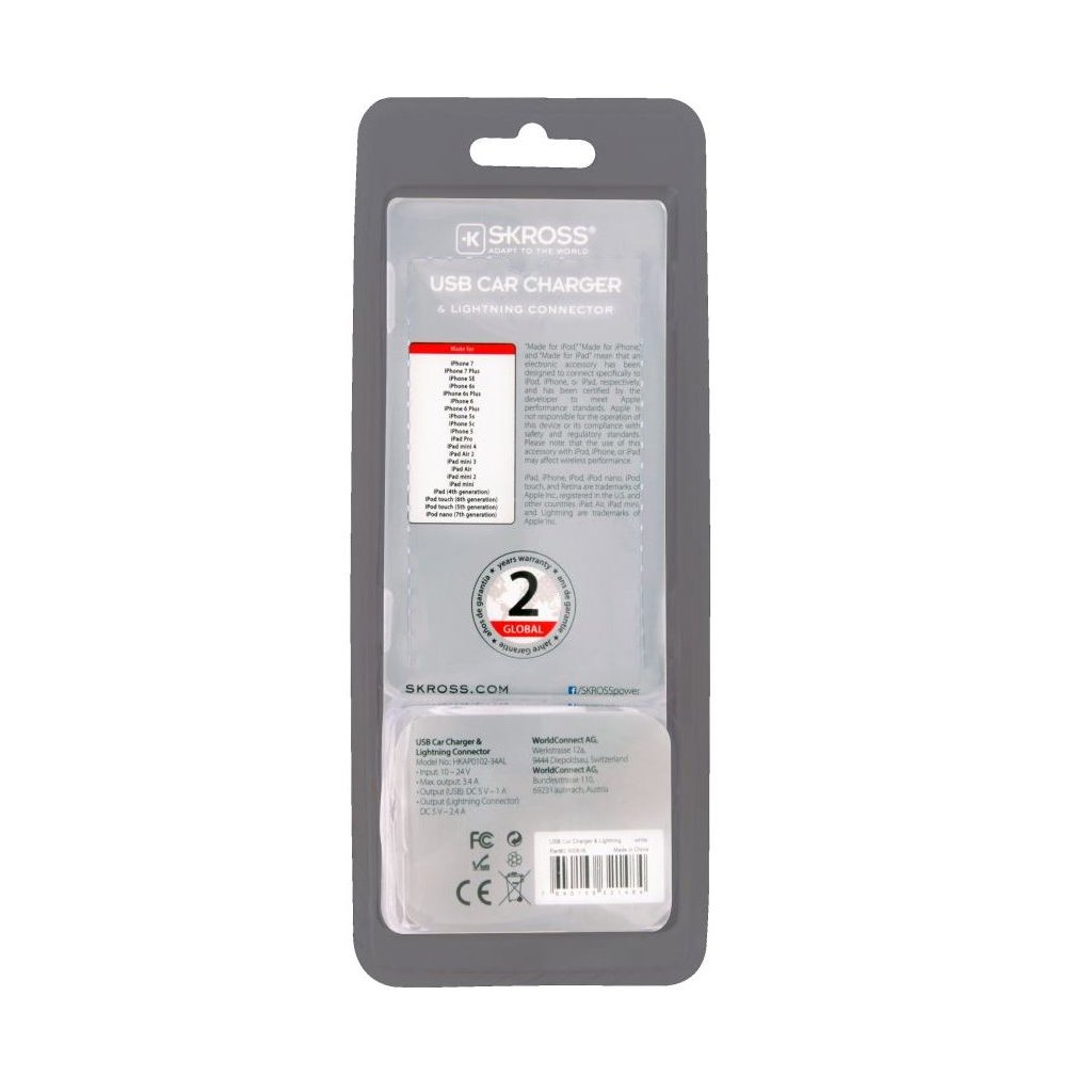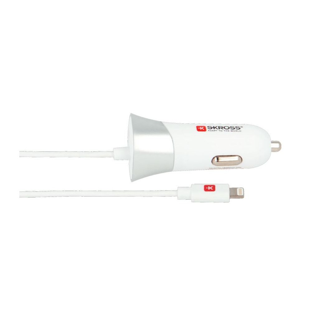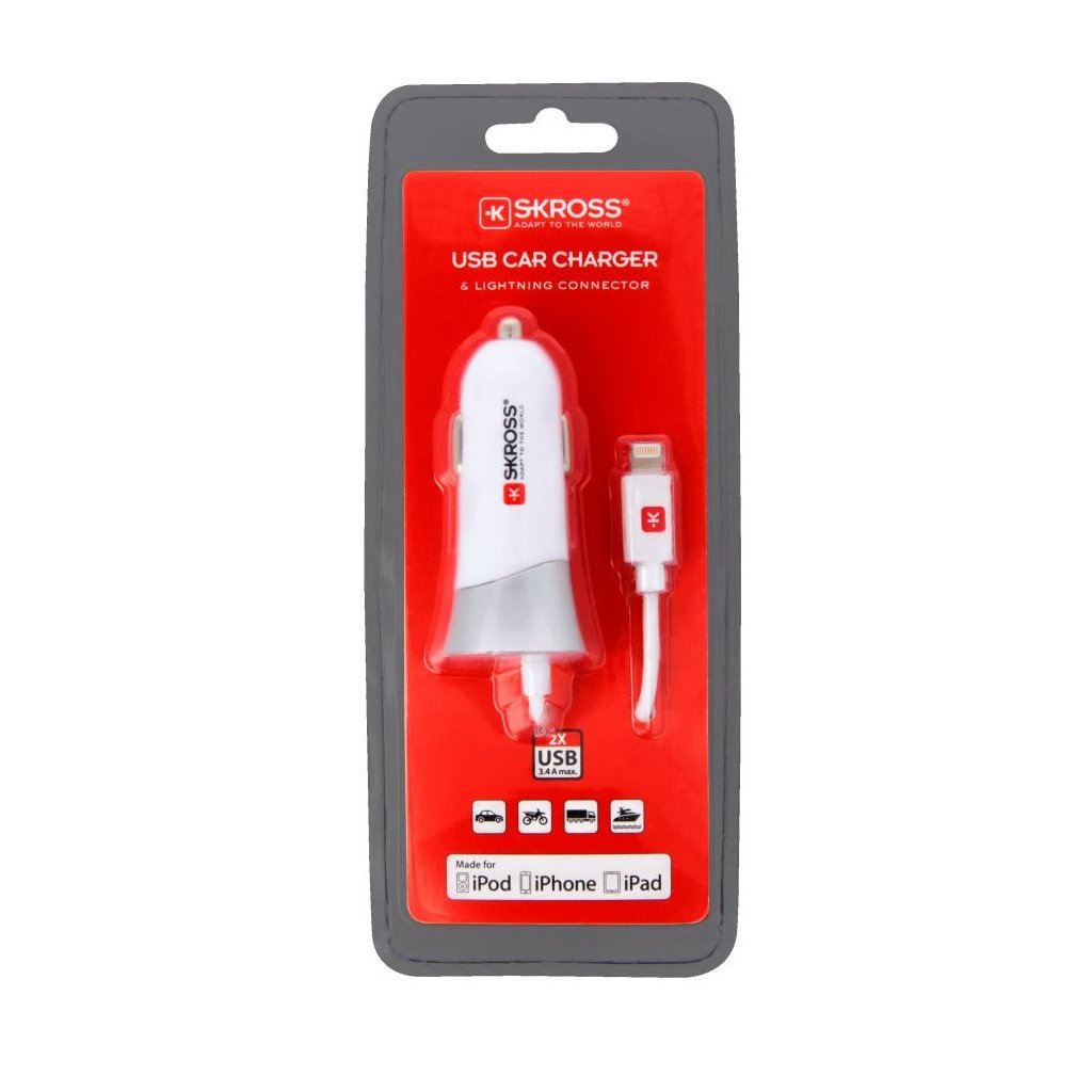 SKROSS USB Car Charger and Lightning Connector nabíjecí autoadaptér, integrovaný kabel + 1x USB výstup navíc, 3400mA max.