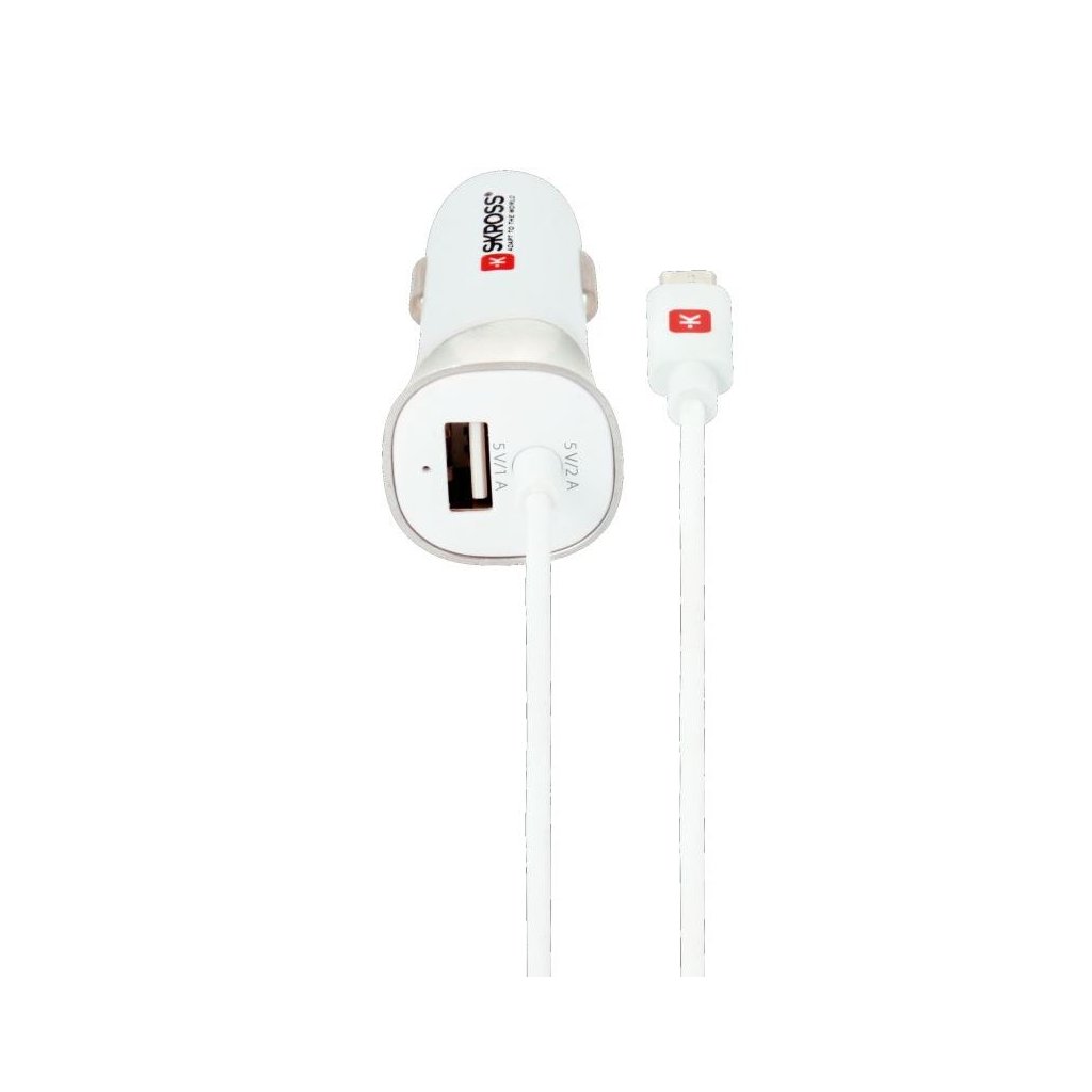 SKROSS USB Car Charger and Micro USB nabíjecí autoadaptér , integrovaný kabel + 1x USB výstup navíc, 3000mA max.