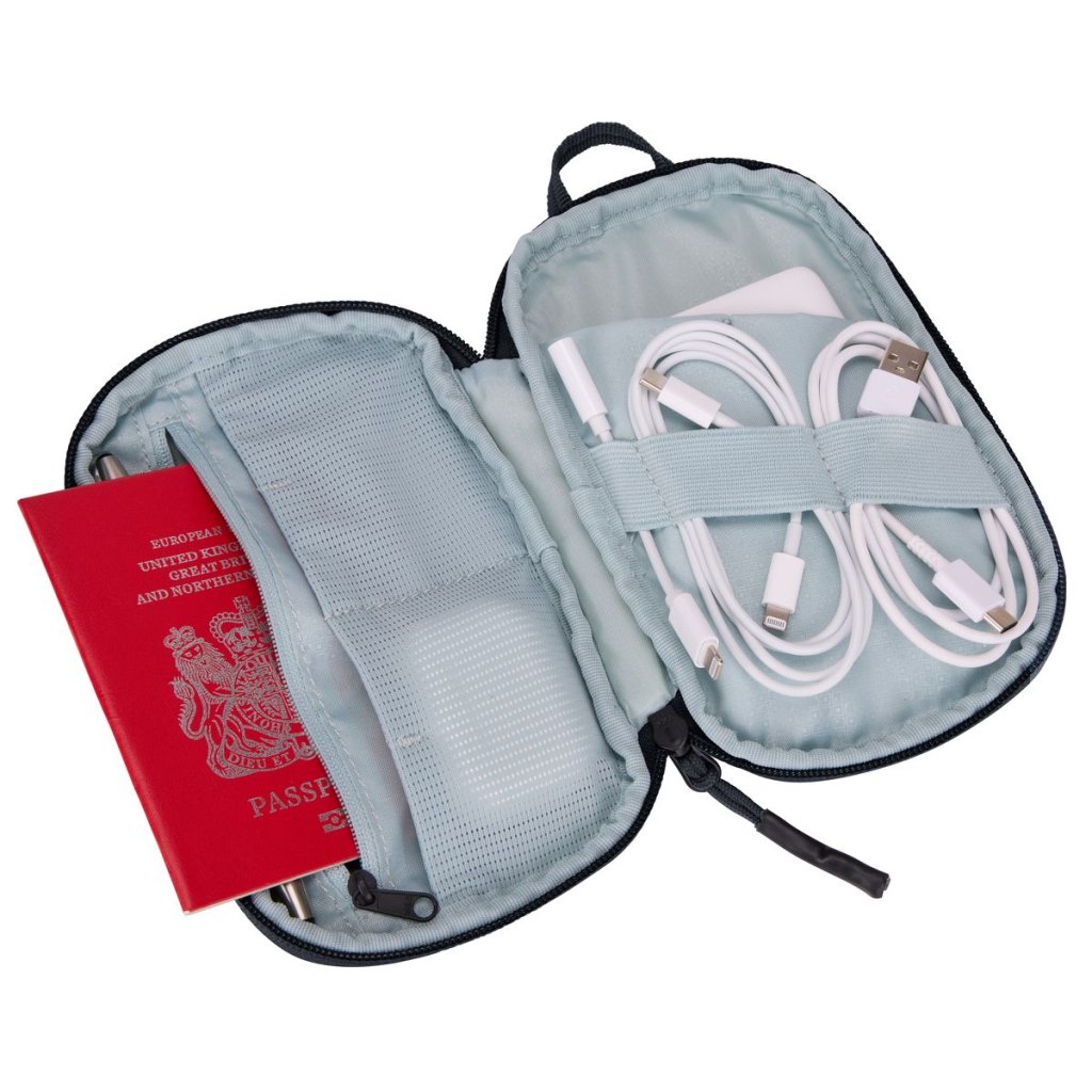 - Univerzální kapsy a elastická poutka pro organizaci kabelů a příslušenství