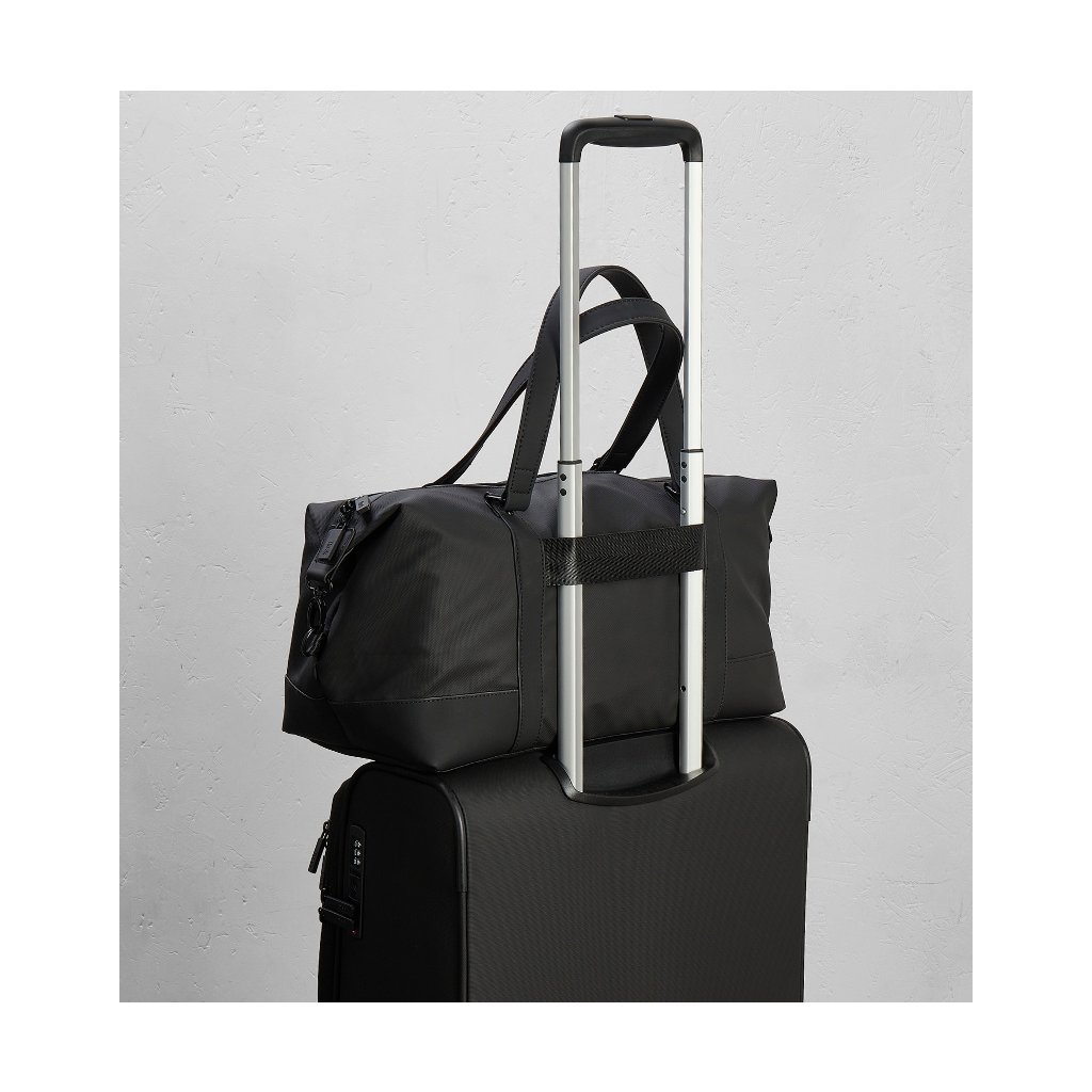 Taška je vyrobena z TPU polyesteru, který vyniká vysokou mechanickou pevností, odolností proti oděru, roztržení i chemickému opotřebení. Hlavní prostor je uzavíratelný zipem a uvnitř se nachází polstrovaná kapsa na notebook a menší kapsa na zip pro bezpečné uložení cenností. Nastavitelný a odnímatelný popruh přes rameno zajišťuje pohodlné nošení, zatímco zadní popruh umožňuje nasazení tašky na výsuvné madlo kufru.