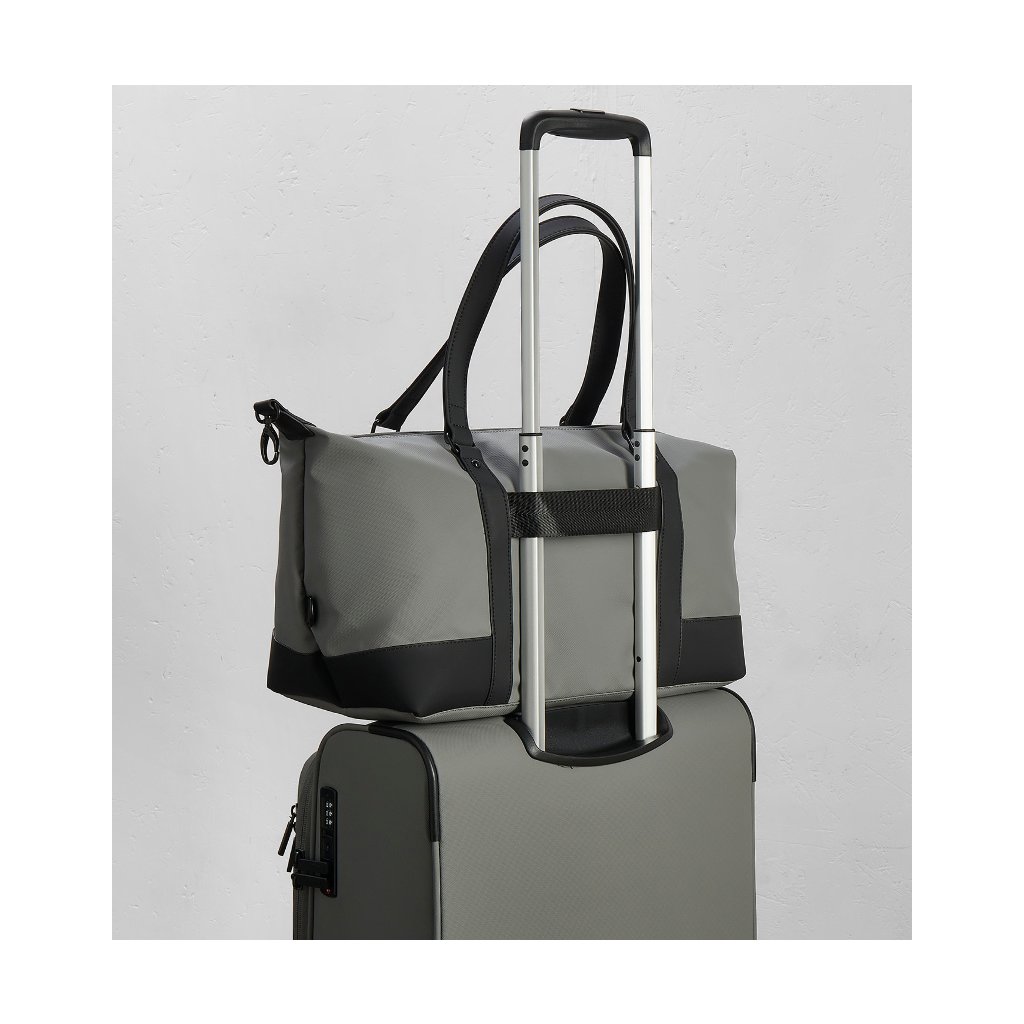 Taška je vyrobena z TPU polyesteru, který vyniká vysokou mechanickou pevností, odolností proti oděru, roztržení i chemickému opotřebení. Hlavní prostor je uzavíratelný zipem a uvnitř se nachází polstrovaná kapsa na notebook a menší kapsa na zip pro bezpečné uložení cenností. Nastavitelný a odnímatelný popruh přes rameno zajišťuje pohodlné nošení, zatímco zadní popruh umožňuje nasazení tašky na výsuvné madlo kufru.