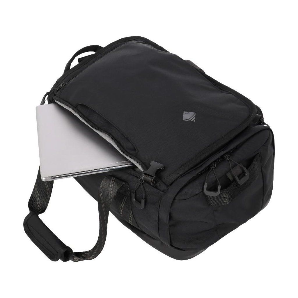 Variabilní způsob nošení umožňuje používat tašku jako klasické zavazadlo přes rameno nebo ji během okamžiku proměnit v pohodlný batoh.