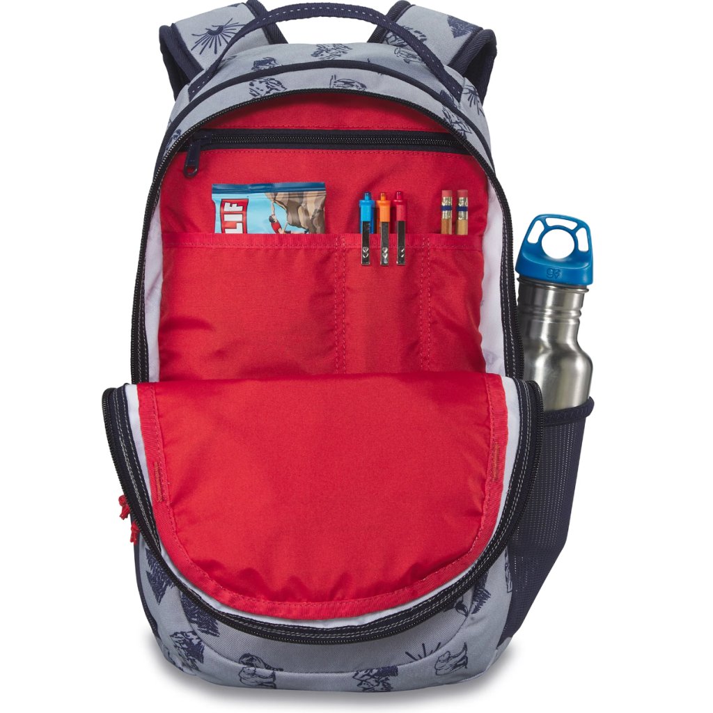 Dakine 18L je ideální volbou pro organizaci během školních dnů, připravená na jakoukoliv Miss. S velkou zipovou kapsou na knihy další vzdělávací potřeby a organizace s mnoha přihrádkami pro snadný přístup k psacím potřebám je tento batoh vybaven i kapsou na notebook pro bezpečné uložení elektroniky. Reflexní detaily a nastavitelný hrudní popruh se záchrannou píšťalkou zajišťující bezpečný průchod do školy i zpět. Síťované boční kapsy poskytují celodenní hydrataci a díky vnitřní jmenovce se snadno dozví, kdo má na kampusu nejlepší tašku. Tento batoh je připraven splnit jakoukoli misi.