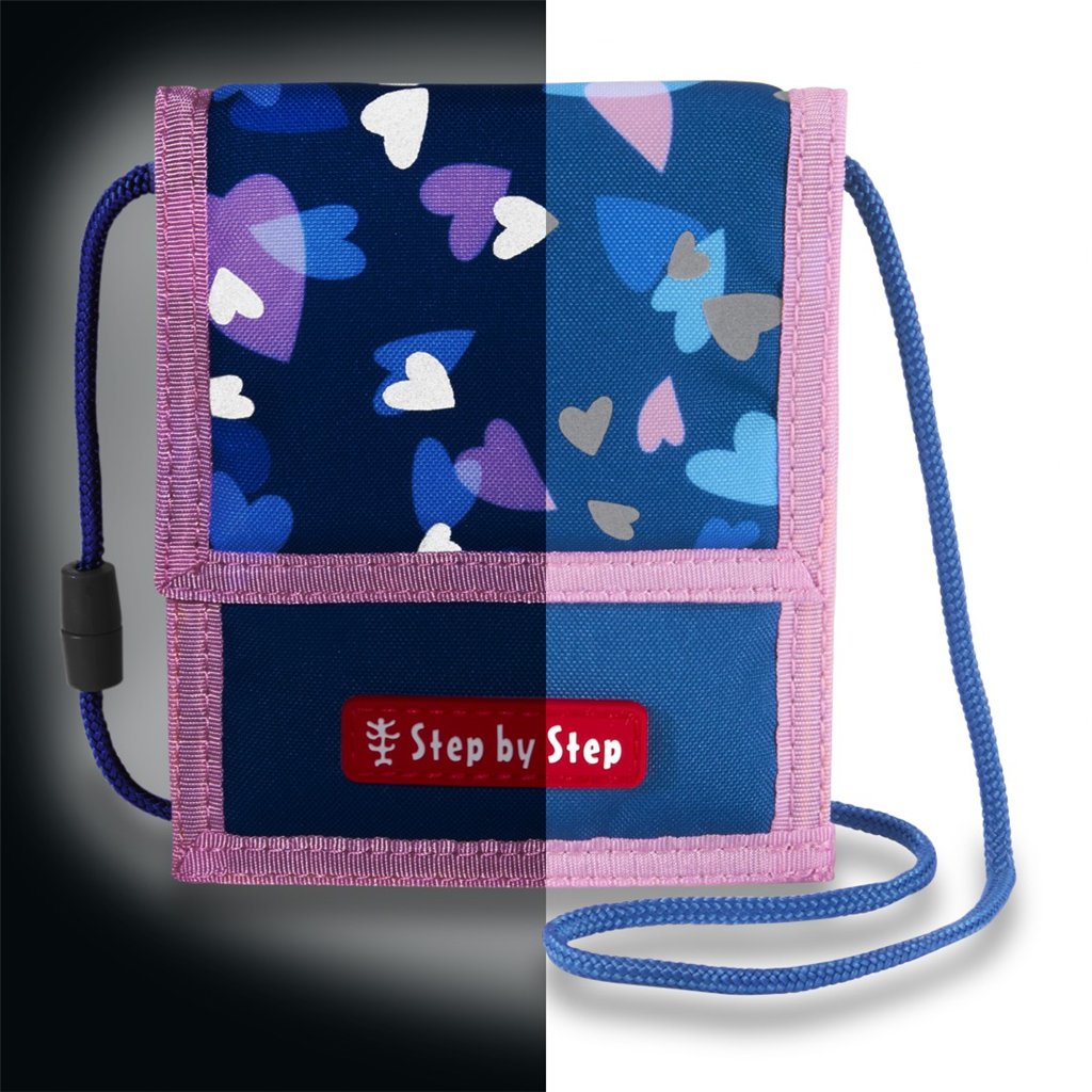 Kapsička na krk Step by Step Seashell Pearl slouží jako přehledné a bezpečné místo pro uložení peněz, průkazu, jízdenky nebo klíčů. Speciální edice REFLECT s reflexním potiskem přispívá k lepší viditelnosti dítěte za šera i tmy, což zvyšuje bezpečnost při každodenním pohybu.