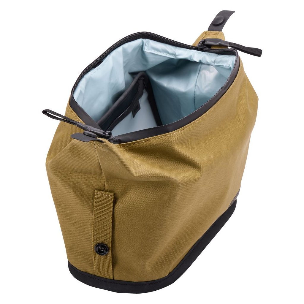 Voděodolná voskovaná tkanina a hypalonové dno chrání obsah i ve vlhkém prostředí. Široké strukturované otevírání zajišťuje okamžitý přehled a potažený vnitřek umožňuje snadné čištění. Recyklované materiály a certifikace bluesign® potvrzují šetrný přístup k životnímu prostředí.