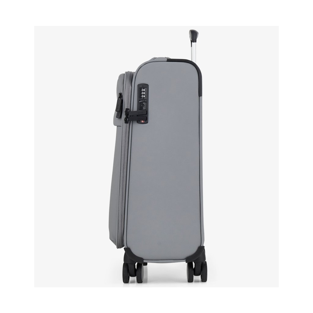 Kufr je vyroben z TPU polyesteru, který se vyznačuje vysokou pevností v tahu, odolností proti oděru, roztržení i chemickému poškození. Tento materiál zajišťuje dlouhou životnost i při častém používání. Čtyři tichá otočná kolečka a integrovaný TSA zámek přispívají k pohodlnému a bezpečnému cestování.