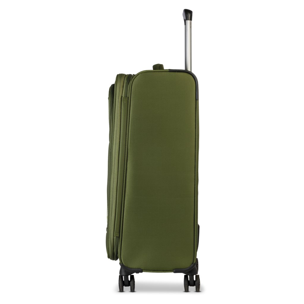Kufr je vyroben z odolného 400D polyesteru, váží pouze 2,40 kg a je vybaven čtyřmi dvojitými kolečky otočnými o 360° pro snadný a plynulý pohyb v letištních halách i městských ulicích.