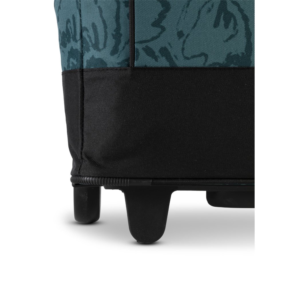 Díky velkým kolečkům se taška snadno pohybuje po různých površích a zaručuje vysokou stabilitu. Výsuvná rukojeť s aretací lze schovat do zipové kapsy, což zajišťuje kompaktní rozměry a snadné skladování. Zpevňený zip udrží hlavni kapsu otevřenou, což usnadňuje manipulaci s obsahem.