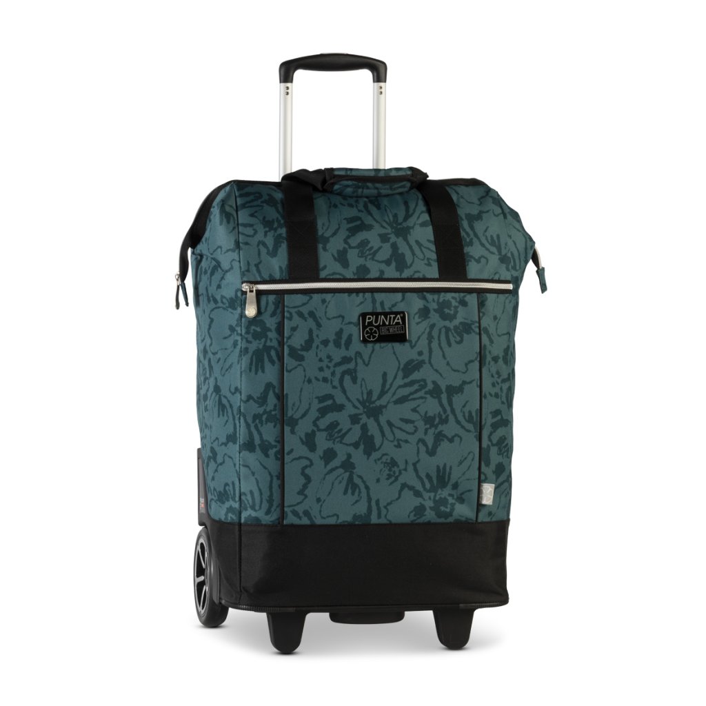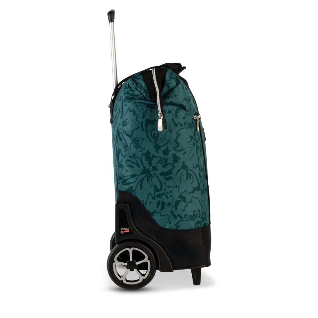 PUNTA Nákupní taška na kolečkách Big Wheel - tyrkysová květy