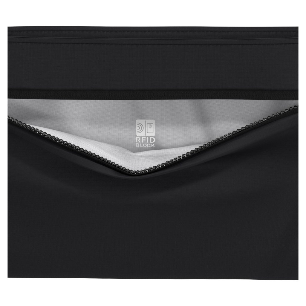 - Kapsy: přední kapsa se skrytým zipem, zadní kapsa s RFID ochranou