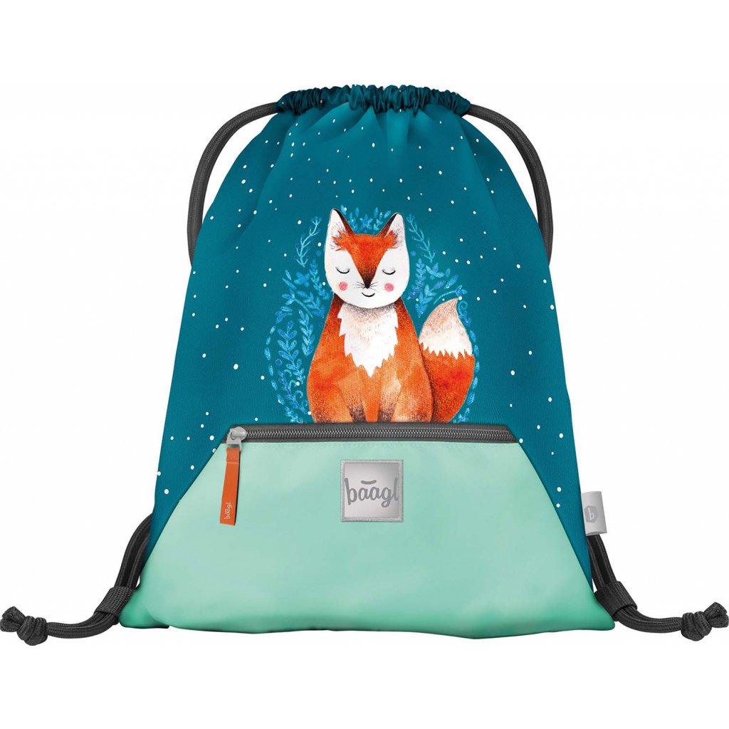Sáček na bačkory nebo na tělocvik Liška je vyroben z pevného voděodolného materiálu. Má zesílené šňůry pro pohodlné nošení na zádech a praktickou kapsičku na zip.