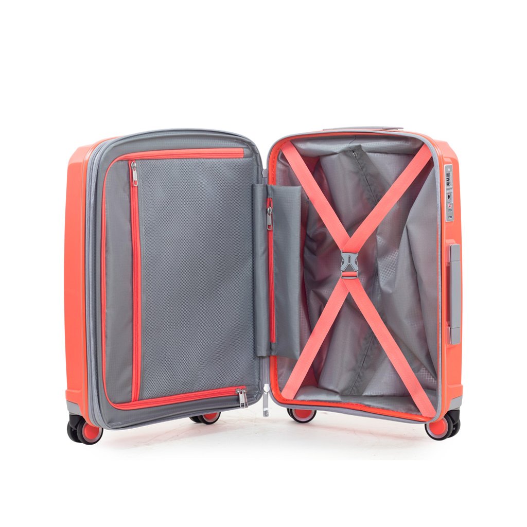 Kufry jsou uzavíratelné zipem, jezdce hlavního zipu se dají zapojit do TSA zapuštěného kódového zámku. U kufrů lze pomocí druhého zipu zvětšit vnitřní objem. Horní i boční madla jsou plastová. Kufry mají lehký (u nejmenší velikosti kufru je teleskopický) výsuvný systém, prostor na víku oddělený textilní přepážkou, vnitřní kapsy a jistící popruhy.