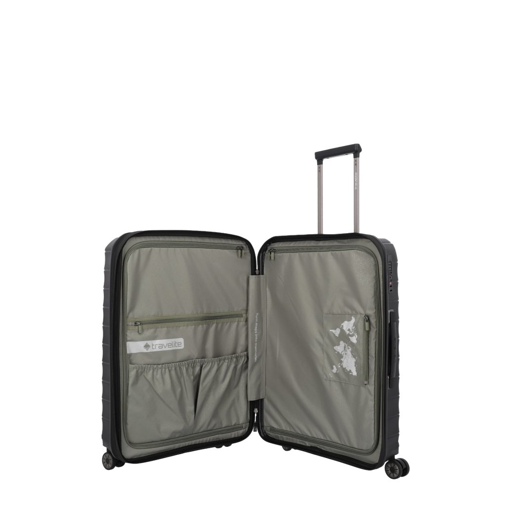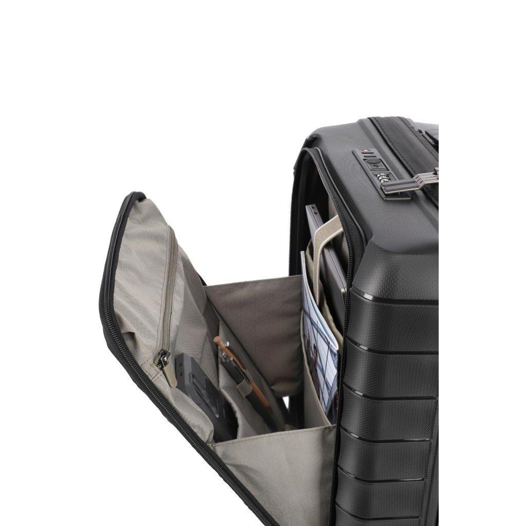 Pružná skořepina s texturou minimalizující viditelnost poškrábání je vyrobena udržitelným způsobem z recyklovaného polypropylenu a obsahuje i plast sesbíraný v rámci iniciativy Ocean Bound Plastic. Jemná podšívka z recyklovaného polyesteru, balicí popruhy, textilní přepážky a vnitřní kapsy zajistí perfektní organizaci. Kufr S navíc nabízí výklopnou přední kapsu na notebook do 15,6".