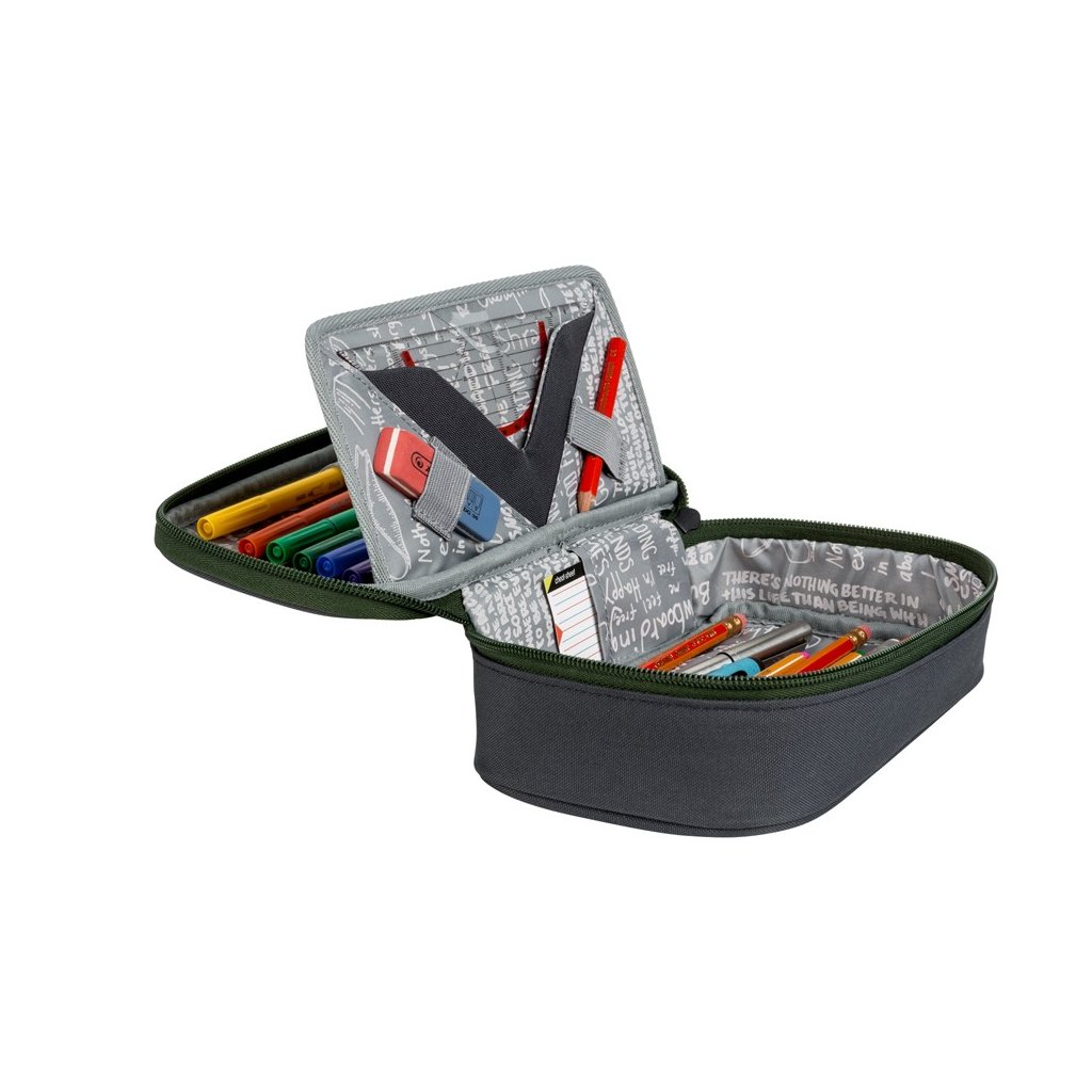 - vnitřní přepážka s gumovými očky na tužky a pera