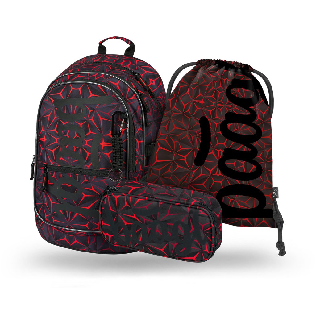BAAGL SET 3 Core Red Polygon: batoh, penál, sáček