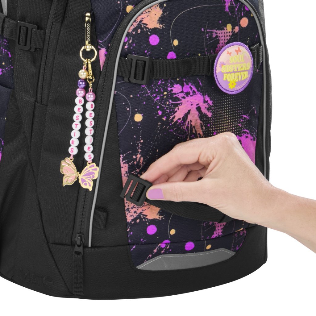 Výměnné klipy, přívěsky a designové doplňky umožňují batoh snadno obměnit podle nálady nebo stylu. Díky tomu zůstává MATE atraktivní i v dalších školních letech.