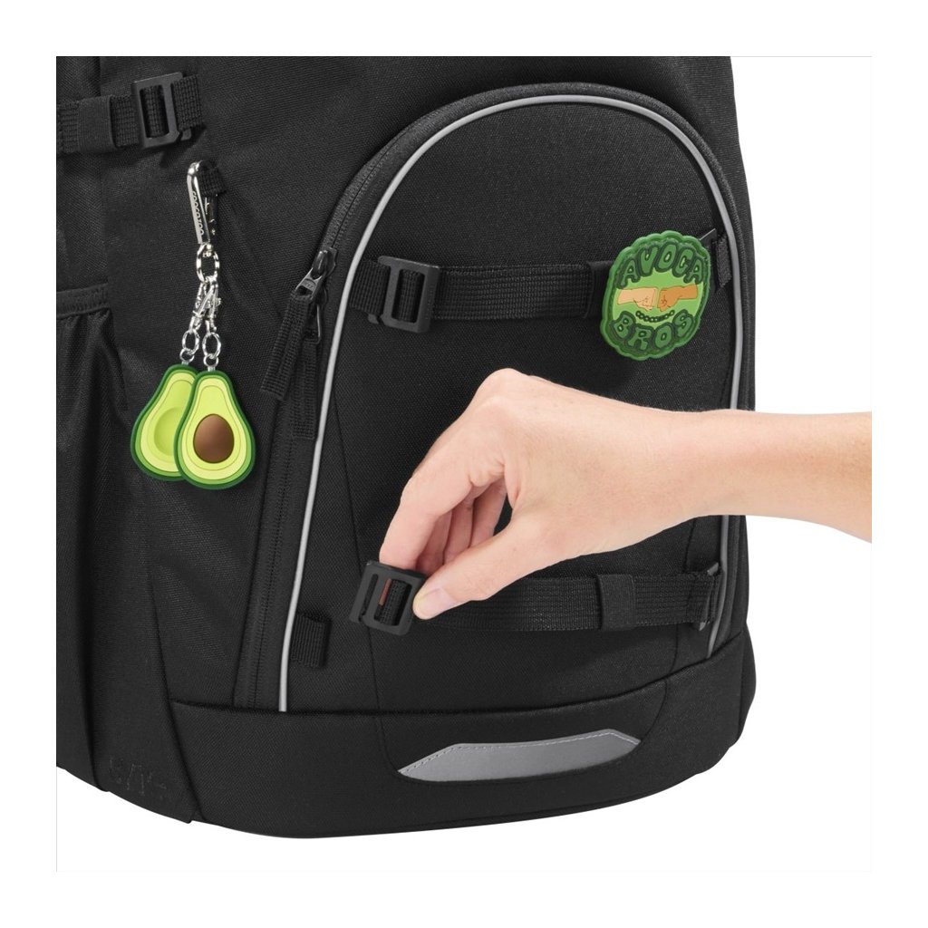 Velké reflexní plochy po celém obvodu zvyšují bezpečnost při cestě do školy. Batoh umožňuje připnutí LED světla a díky výměnným nášivkám nebo přívěskům lze jeho vzhled snadno přizpůsobit vlastnímu stylu.