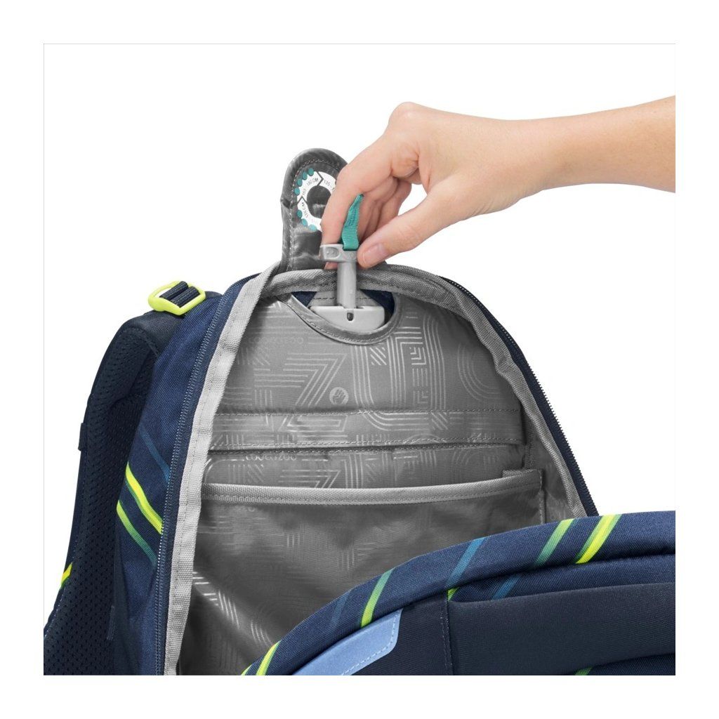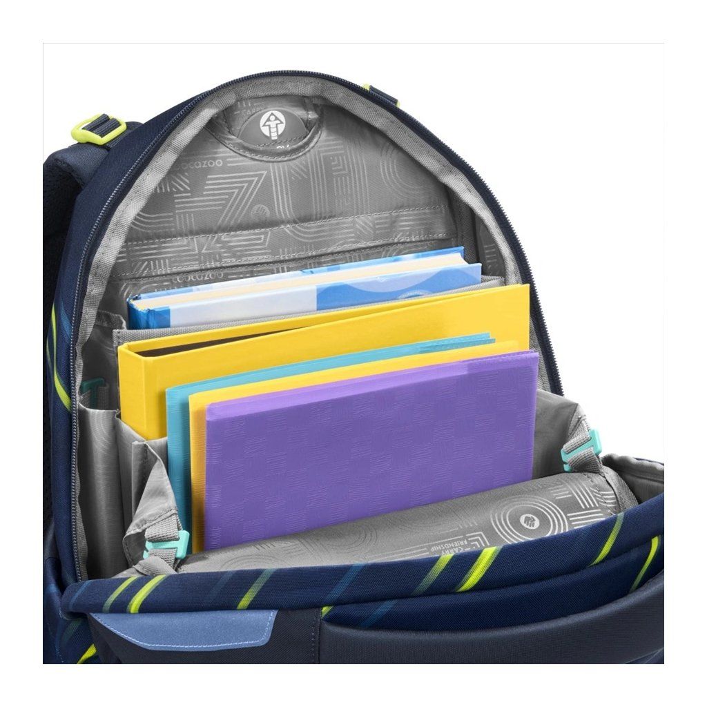 Vnitřní uspořádání batohu nabízí dostatek místa pro učebnice, sešity i každodenní výbavu. Hlavní přihrádky s integrovanou částí na knihy jsou umístěny blízko zad, což pomáhá s lepším rozložením hmotnosti.