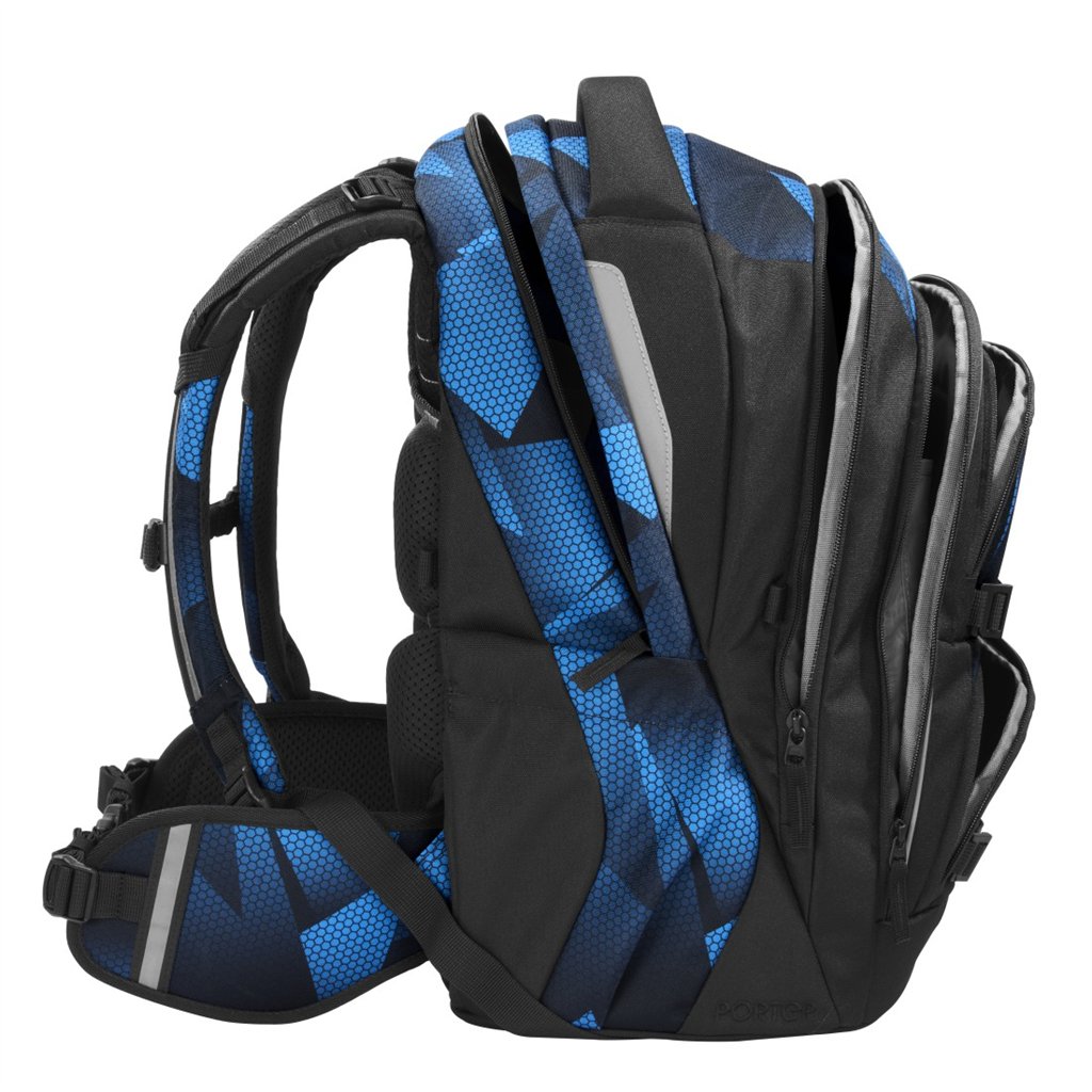 Dvě velké hlavní přihrádky, prostorné přední kapsy, organizér a odnímatelná vnitřní přepážka – PORTER nabízí objem 35 litrů a promyšlené uspořádání, které si poradí i s objemnější školní výbavou.