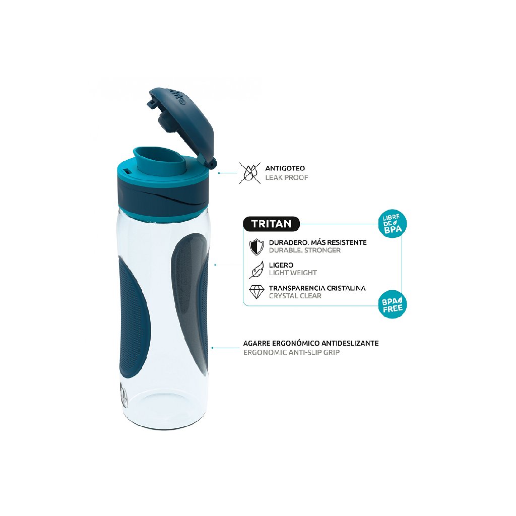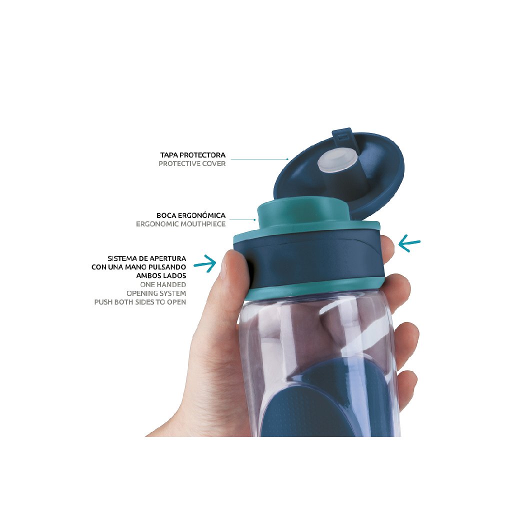 Láhev má široké hrdlo, díky němuž se snadněji čistí. Můžete do láhve vložit jak kousky ovoce, tak kostky ledu. Láhev jednoduše otevřete jednou rukou pouhým stlačení z obou stran.