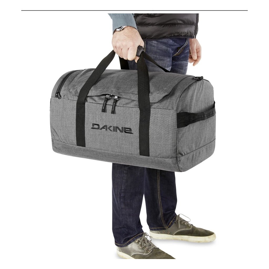 Snadné vkládání a vytahování zařízení. Je těžké překonat všestrannou všestrannost odolné taštičky. 50litrový kufr Dakine EQ přidává otvor ve tvaru písmene U po celé délce pro snadný přístup k jeho velkorysé hlavní přihrádce. K dispozici je koncová kapsa na zip, která umožňuje snadné nalezení malých předmětů, a celá taška se nacpe do koncové kapsy pro snadné skladování, když je prázdná.