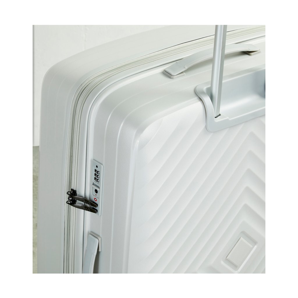 Tento kufr přináší spojení elegance a funkčnosti pro vaše pohodlí na cestách. Kufr je uzavíratelný zipem. Oba jezdce zipu se dají zapojit do TSA zapuštěného kódového zámku. U kufru lze pomocí druhého zipu zvětšit vnitřní objem. Horní i boční madlo je plastové. Celý pojízdný systém je umístěn uvnitř kufru pod textilní podšívkou, aby nedošlo k poškození systému při přepravě a je opatřen čtyřmi dvojitými kolečky otočnými o 360°. Kufr má lehký výsuvný systém, vnitřní přepážku a jistící popruhy.