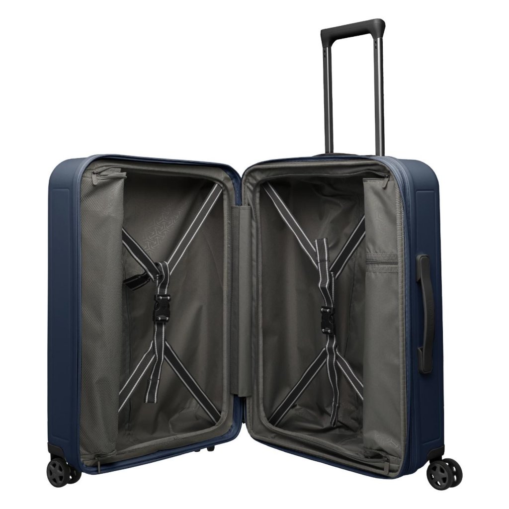 - Pohodlné manipulace: Lehká kolečka, teleskopická madla a ergonomické úchyty zajišťují snadnou manipulaci i v přeplněném prostředí.