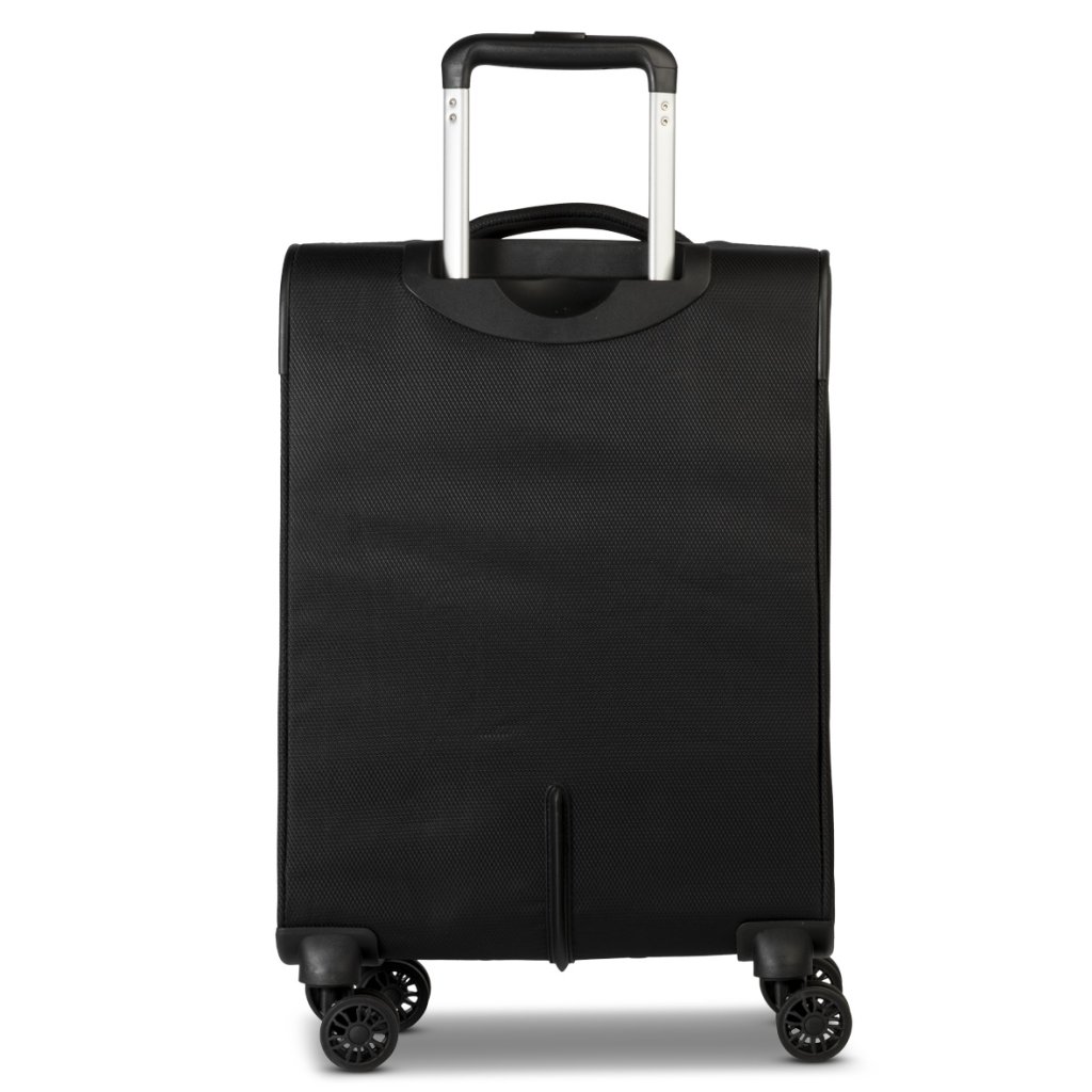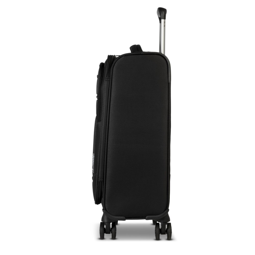 Kufr je vyroben z pevného 400D polyesteru, který je odolný proti opotřebení a běžným nárazům. Moderní design doplňují funkční detaily, jako jsou horní a boční madla, výsuvné hliníkové madlo a stabilní konstrukce s ochranným spodním prvkem.