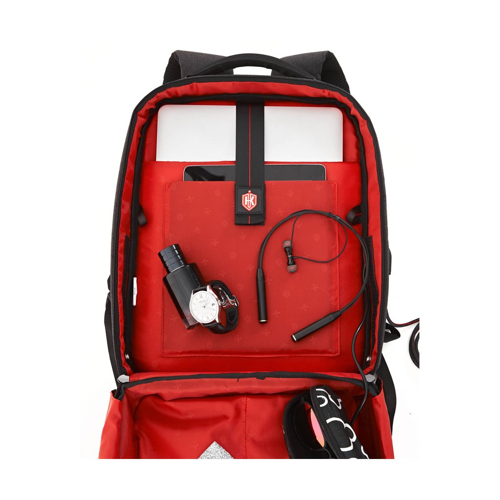 Skrytá boční kapsa je podšitá nepromokavou látkou uvnitř vhodnou pro deštníky a lahve s vodou. A standardem pro všechny obchodní formální modely batohů je dodáván s popruhem na zavazadla, USB nabíjecím portem, prodyšným polstrováním zad Airtrax, popruhem na sluneční brýle a praktickou kapsou na ramenním popruhu pro uložení ID nebo kreditních karet.
