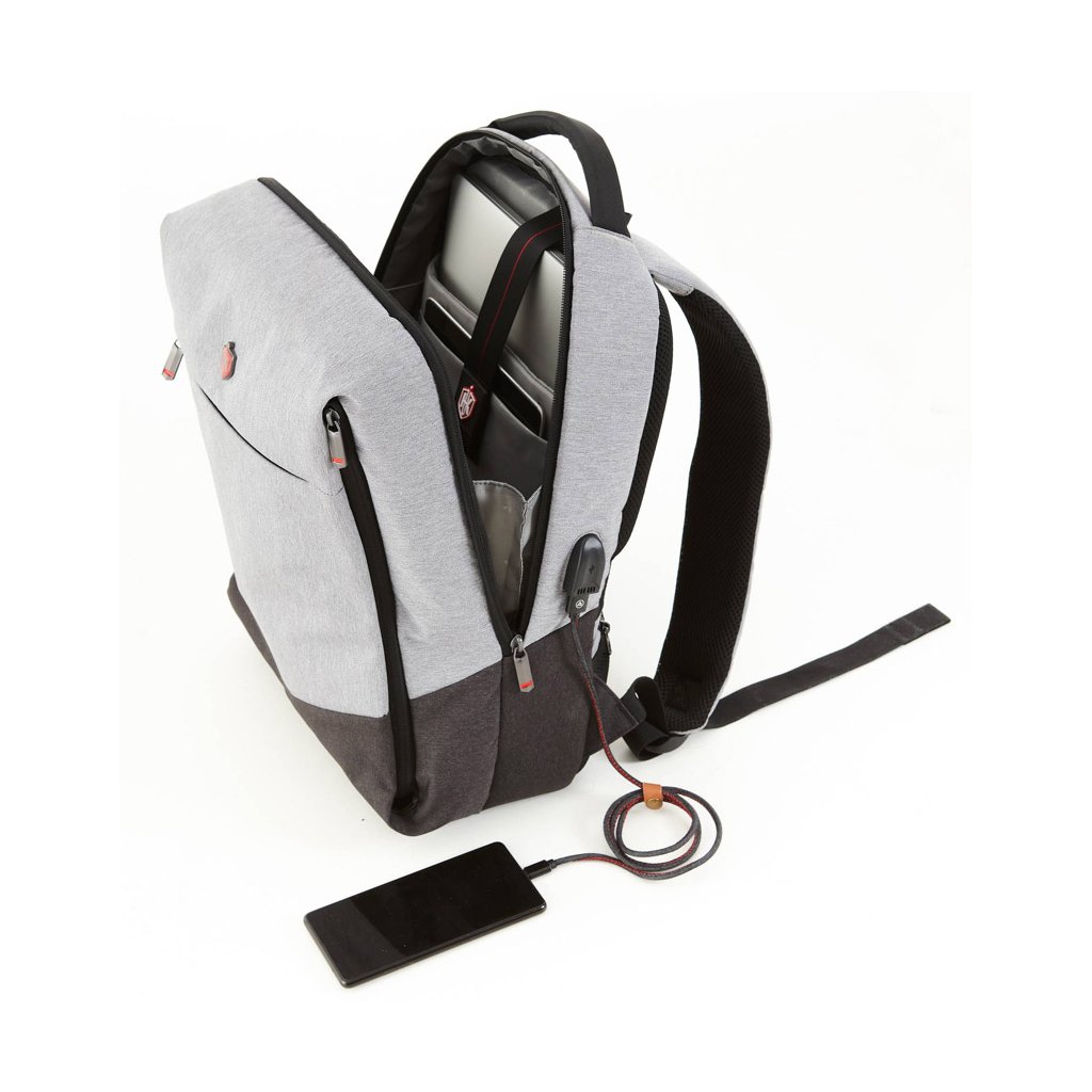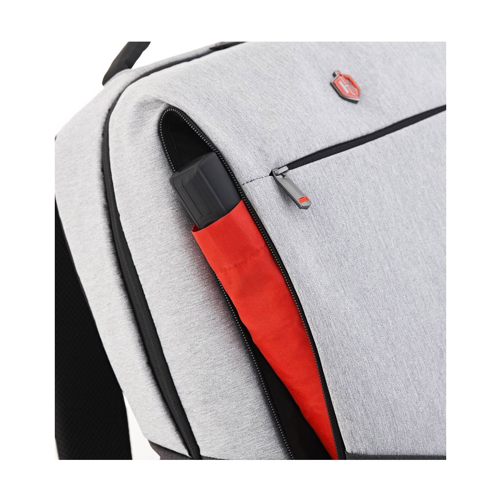 Tento stylový formální batoh je navržen tak, aby vynikl svým elegantním a klasickým designem a poutavou barvou, která dodá vašemu obchodnímu vzhledu módní vzpruhu. Vnější tkanina je voděodolná K-tec tkanina vyrobená s červeně zakončenými zipy SBS, které se k sobě hodí. Je také vybaven USB nabíjecím portem na boku tašky, takže můžete zařízení napájet na cestách.