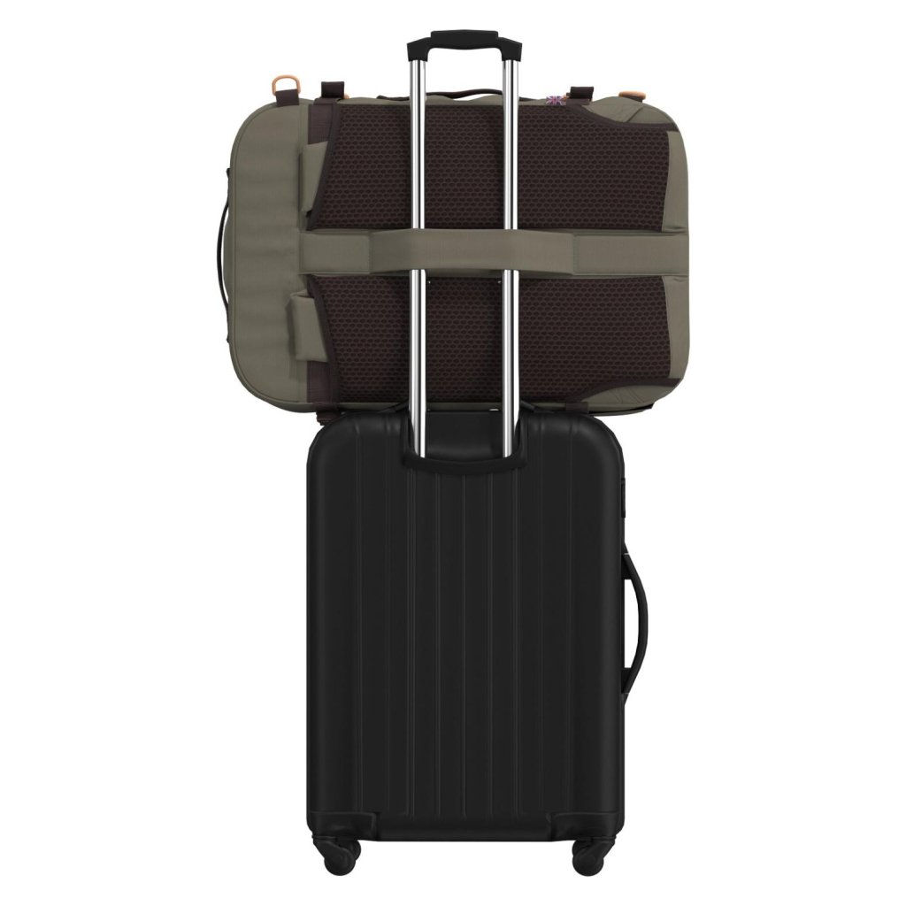 Polstrovaný zádový panel s ventilací, hrudní popruh a odnímatelný bederní pás rozkládají zátěž a drží batoh stabilně i při svižném přesunu mezi terminály.