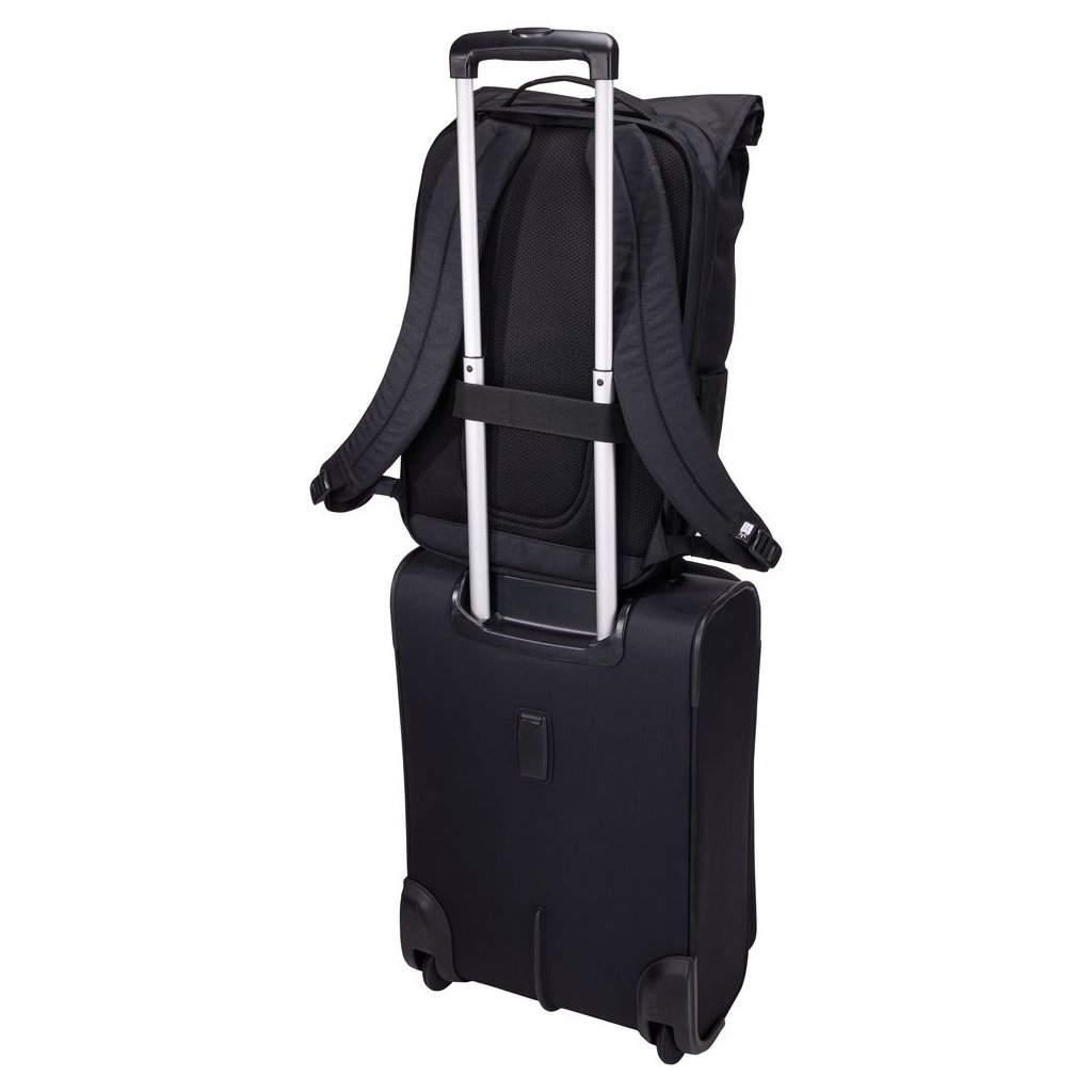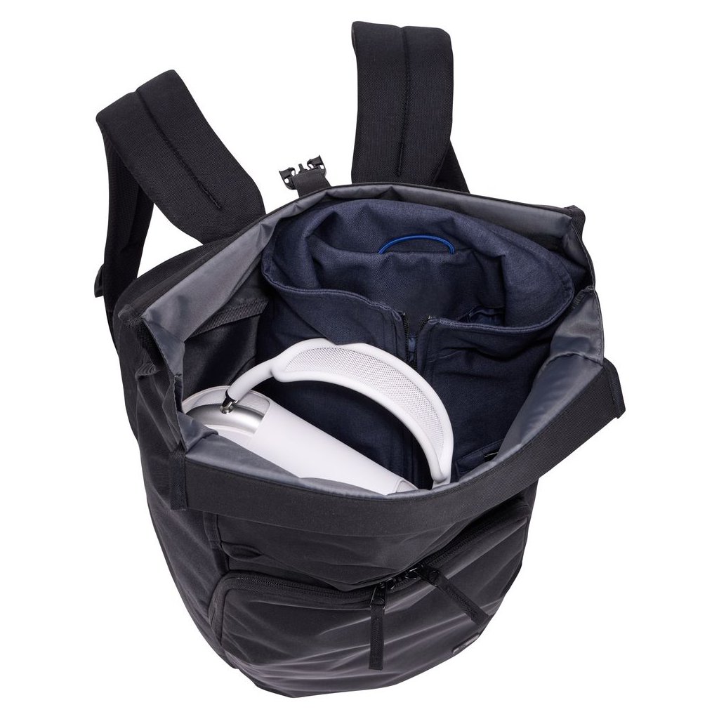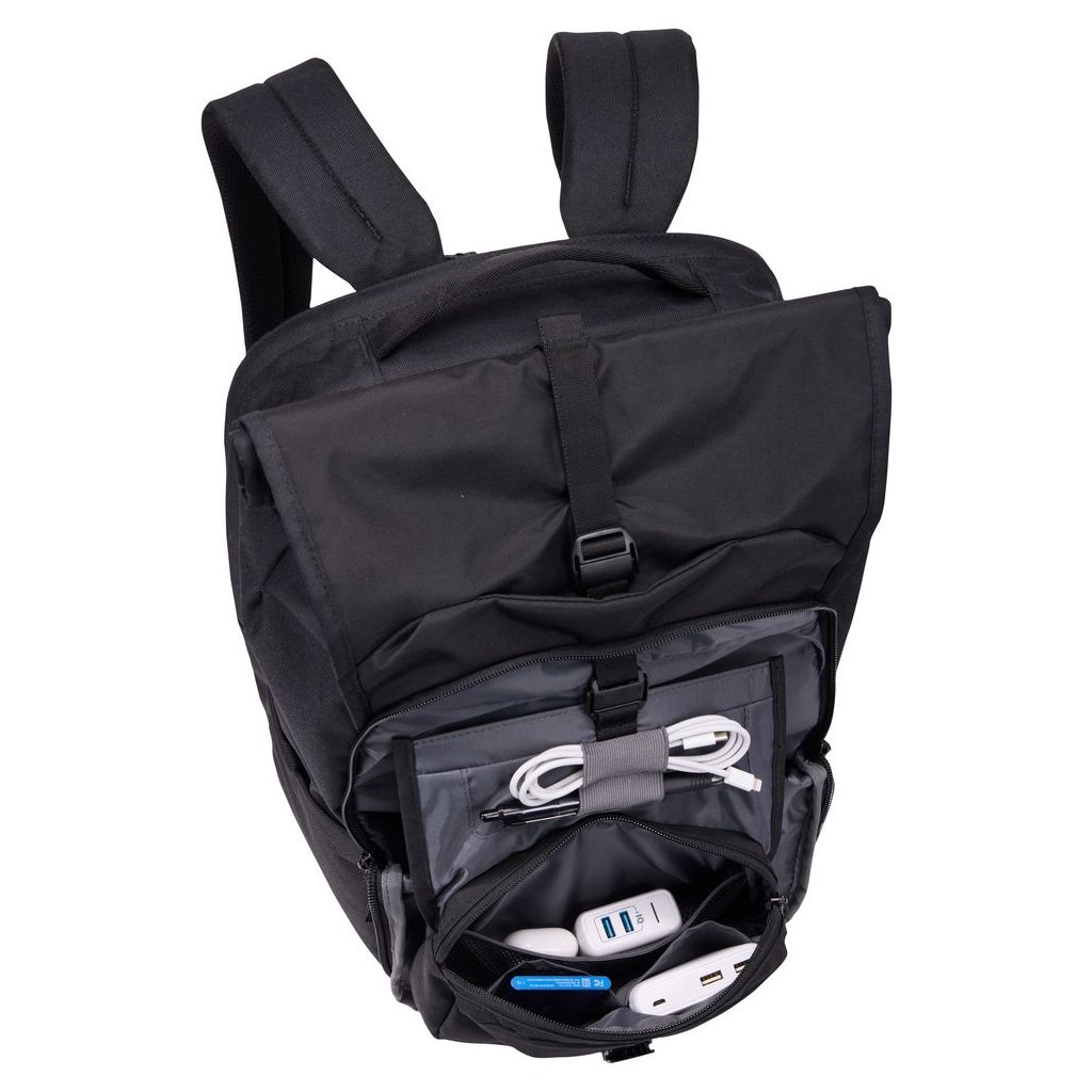 Samostatný pracovní oddíl pojme notebook až do velikosti 17", tablet, klávesnici, myš a příslušenství. Rolovací horní část umožňuje snadné navýšení kapacity batohu z 28 na 33 litrů podle aktuálních potřeb. Součástí je také vyjímatelné pouzdro, které slouží jako organizér drobné elektroniky a lze jej pohodlně přenášet samostatně mezi domovem a kanceláří.