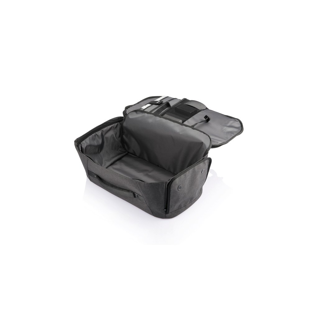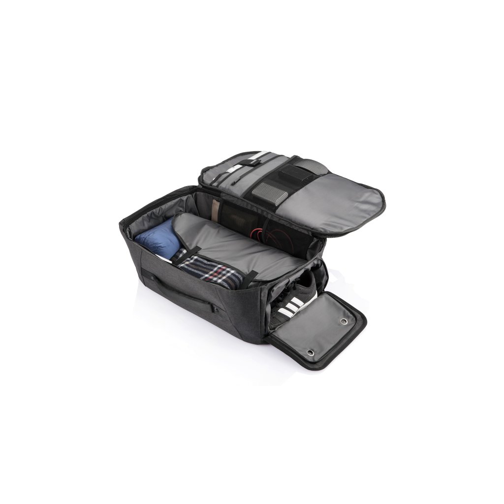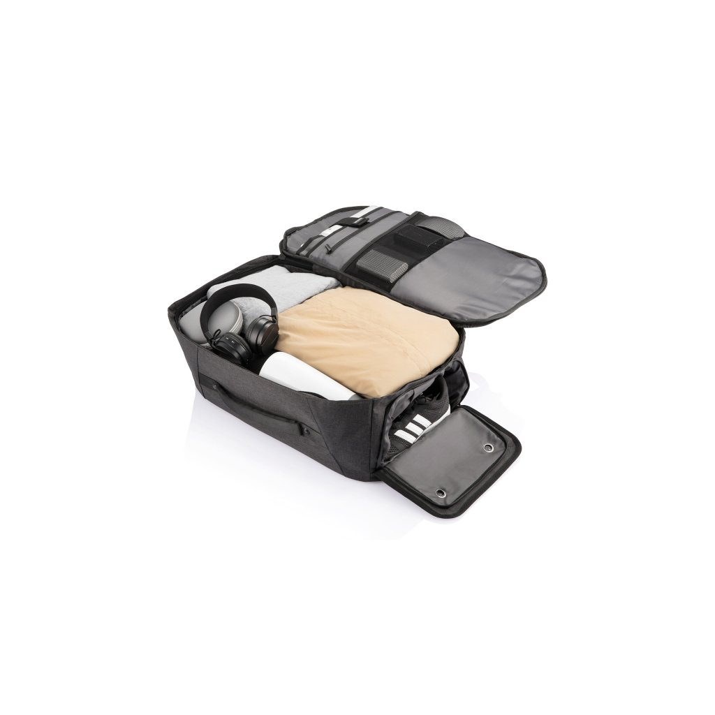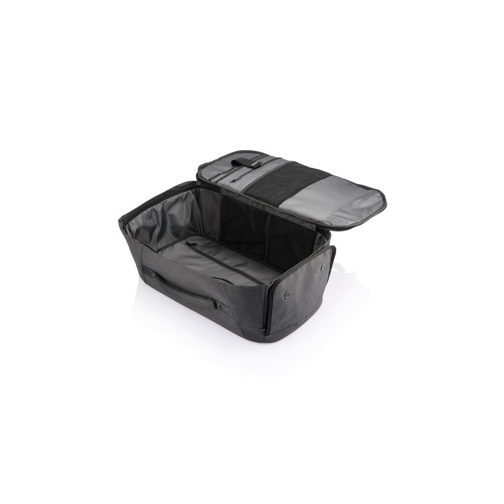Batoh a cestovní taška v jednom, který nelze vykrást ze série Bobby Duffle od XD Design. Batoh je vyroben z vodoodpudivého a recyklovatelného materiálu rPET. Má skryté zipy a kapsy, které jsou díky tomu méně nápadné a zloděj si jich jen tak nevšimne. Objem tohoto zavazadla je 30 l a má ideální velikost jako příruční zavazadlo. Svůj mobilní telefon, kartu a peněženku si můžete skrýt v kapse se systémem RFID. Vnitřní prostor je perfektně uspořádaný s prostorem na 17" notebook, nepromokavou kapsou na deštník, kapsou na obuv a dalšími kapsami.