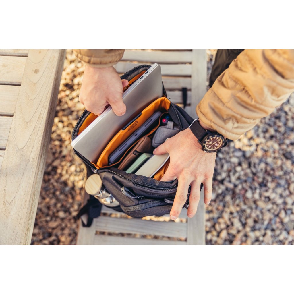 Rhune 22, definovaný výkonnými materiály a recyklovanými tkaninami, plní závazek udělat z lepšího produktu lepší způsob. Intuitivní organizace a inovativní síťovina AirCushion pokryje všechny vaše potřeby v tomto ideálním, každodenním batohu. Všechny tkaniny jsou vyrobeny z recyklovaného obsahu, což má za následek 57% snížení uhlíkové stopy ve srovnání s běžným nylonovým obalem. Bezpěnový zádový panel AirCushion poskytuje skutečnou prodyšnost, eliminuje tlakové body a přidává chladicí výhody odvádějící vlhkost. Kapsa na postroj Digi perfektně pasuje na špunty do uší, tranzitní lístky, hůlku a další každodenní náležitosti a udržuje je v bezpečí a snadno přístupné. Polstrovaný, tvarovaný ramenní postroj s odnímatelným hrudním popruhem, pokud chcete, aby postroje byly čisté. Velký panel se zapínáním na zip do hlavní komory zajišťuje snadný přístup k vašim věcem.