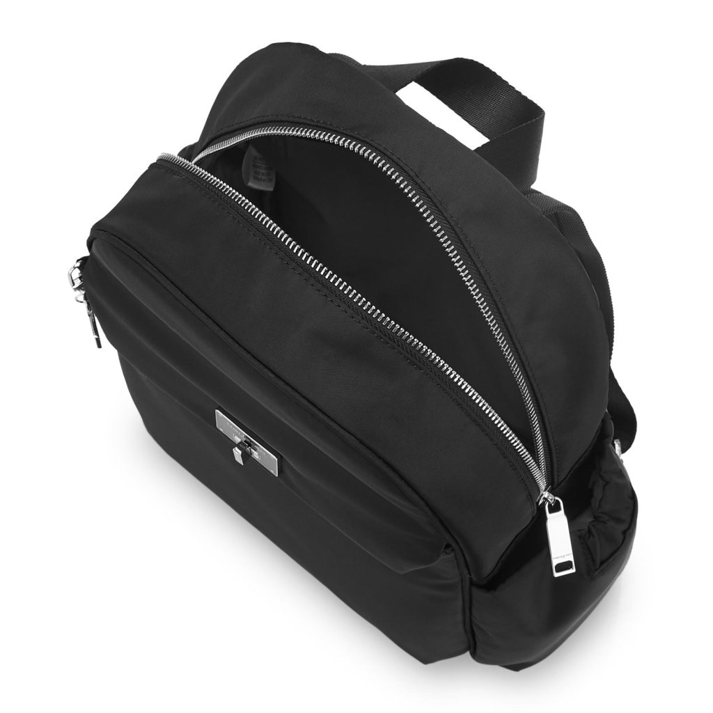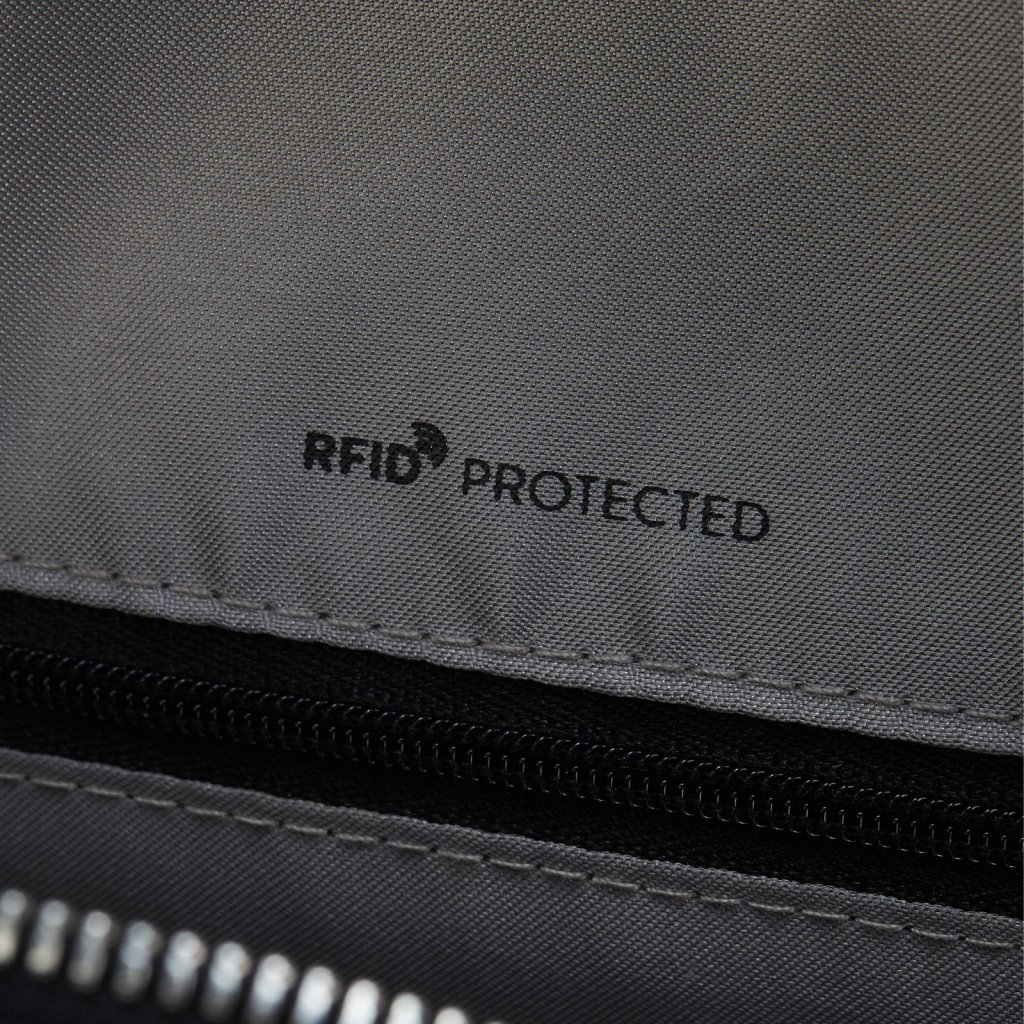 Pro bezpečný přenos platebních nebo identifikačních karet s technologií RFID je batoh vybaven úložným prostorem z materiálu, který dokáže zabránit přenosu rádiových frekvencí na vnější stranu batohu. Tímto způsobem není možné neoprávněně načíst data na dálku pomocí čtečky. Speciální kapsa v batohu je chráněna proti RFID.