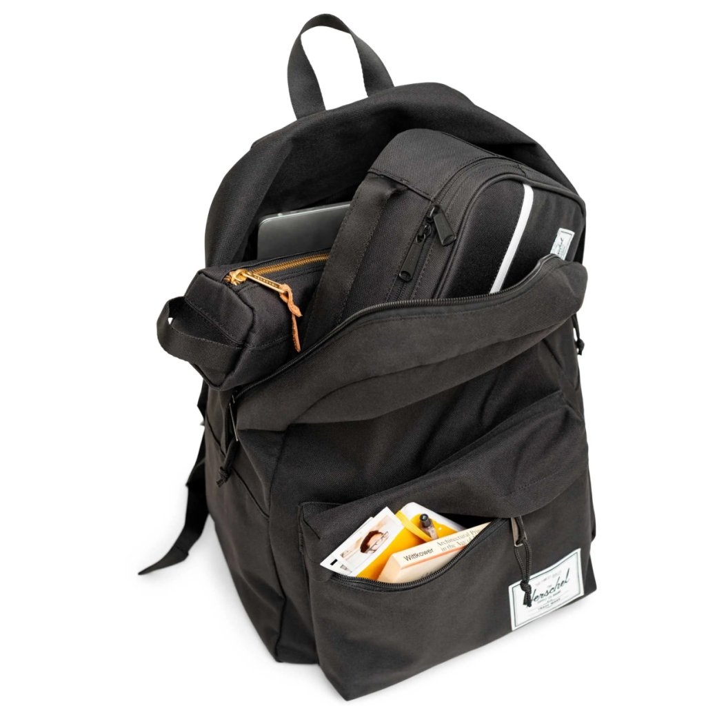 Tento prostorný model pojme vše potřebné pro školní den i víkendové výlety. Polstrované ramenní popruhy zaručují komfort, zatímco kapsa na notebook a boční držák na láhev zajistí dokonalou organizaci. Batoh zdobí ikonické detaily Herschel Supply – DNA tab, Put Yourself Out There™ label a minimalistické zpracování, které nikdy nevyjde z módy.