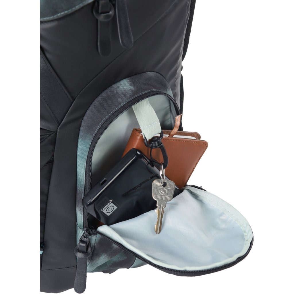 Ergonomické ramenní popruhy s nastavitelným hrudním popruhem zajišťují pohodlné nošení i při delším cestování. Prodyšný zádový panel přispívá k pohodlí a snižuje pocení během horkých dní. Batoh je vybaven dvěma bočními kapsami na zip, kde se v jedné nachází karabinka na klíče, což zajišťuje, že klíče budou vždy na svém místě a snadno dostupné.