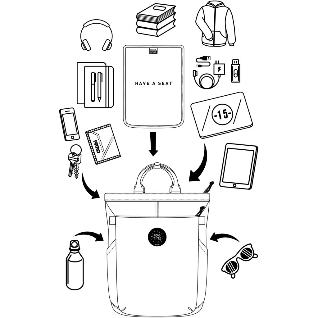 Lehké, moderní a variabilní zavazadlo Nitro Mojo se perfektně přizpůsobí požadavkům městského života. Tento elegantní batoh nabízí hned čtyři způsoby nošení – na zádech jako batoh, v ruce nebo přes rameno jako tašku, či crossover způsobem jako messenger-bag. Spolehlivě vás doprovodí na cestě do školy a do práce, ať už se vydáte pěšky, na kole nebo tramvají. Prakticky řešený interiér pojme notebook, tablet, svačinu i svetr a disponuje i vyjímatelnou podložkou na sezení – super vychytávka pro letní večery v parku!