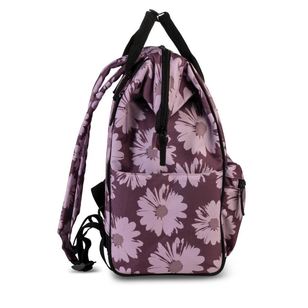 Na přední straně je umístěna prostorná zipová kapsa na věci, které potřebujete mít po ruce, zatímco vertikální kapsa na zadní straně přidává další diskrétní úložný prostor. Po stranách se nachází dvě kapsy ideální na lahve s pitím. Polstrované ramenní popruhy lze snadno nastavit dle postavy, a pokud batoh raději držíte v ruce, potěší vás pohodlná držadla s možností sepnutí.