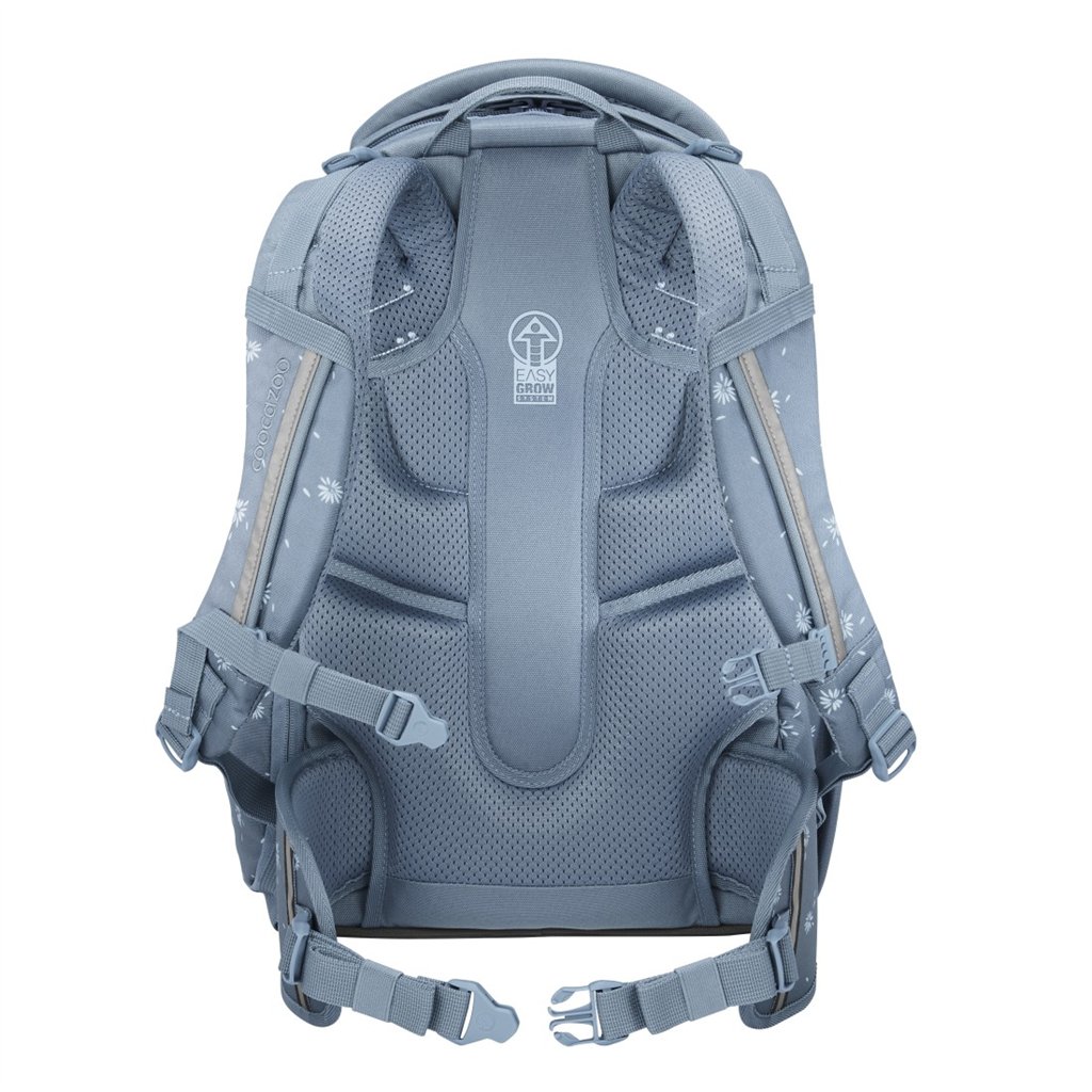 Rychlé a přesné přizpůsobení výšky batohu pomocí otočného mechanismu umístěného uvnitř zadní části. Systém EASY GROW SYSTEM umožňuje plynulé nastavení ramenních popruhů podle aktuální výšky dítěte, takže batoh správně sedí a přirozeně roste spolu s ním.