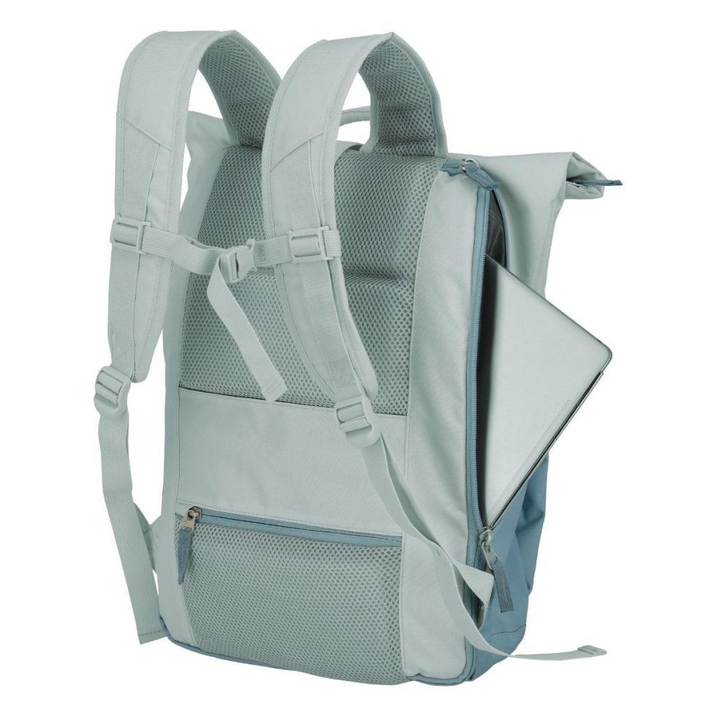 Vyznačuje se jednokomorovým designem s možností rozšíření díky rolovacímu zavírání, samostatnou polstrovanou přihrádkou na 15,6" notebook a řadou dalších praktických funkcí. Pohodlné nošení zajišťují prodyšný zádový panel a polstrované ramenní popruhy s nastavitelnou délkou. Batoh je vyroben z kvalitního polyesteru s PVC úpravou, což zaručuje výbornou odolnost a dlouhou životnost.