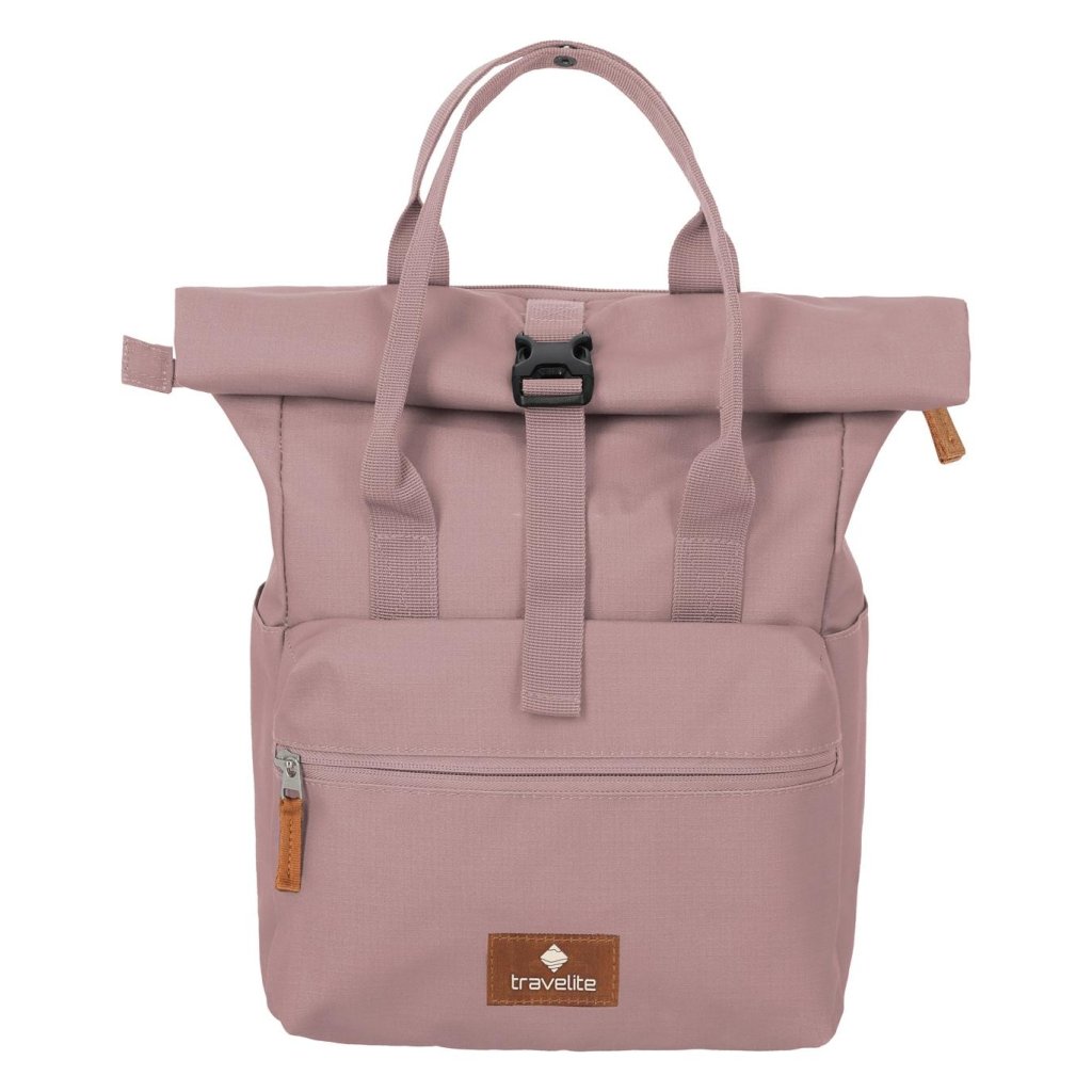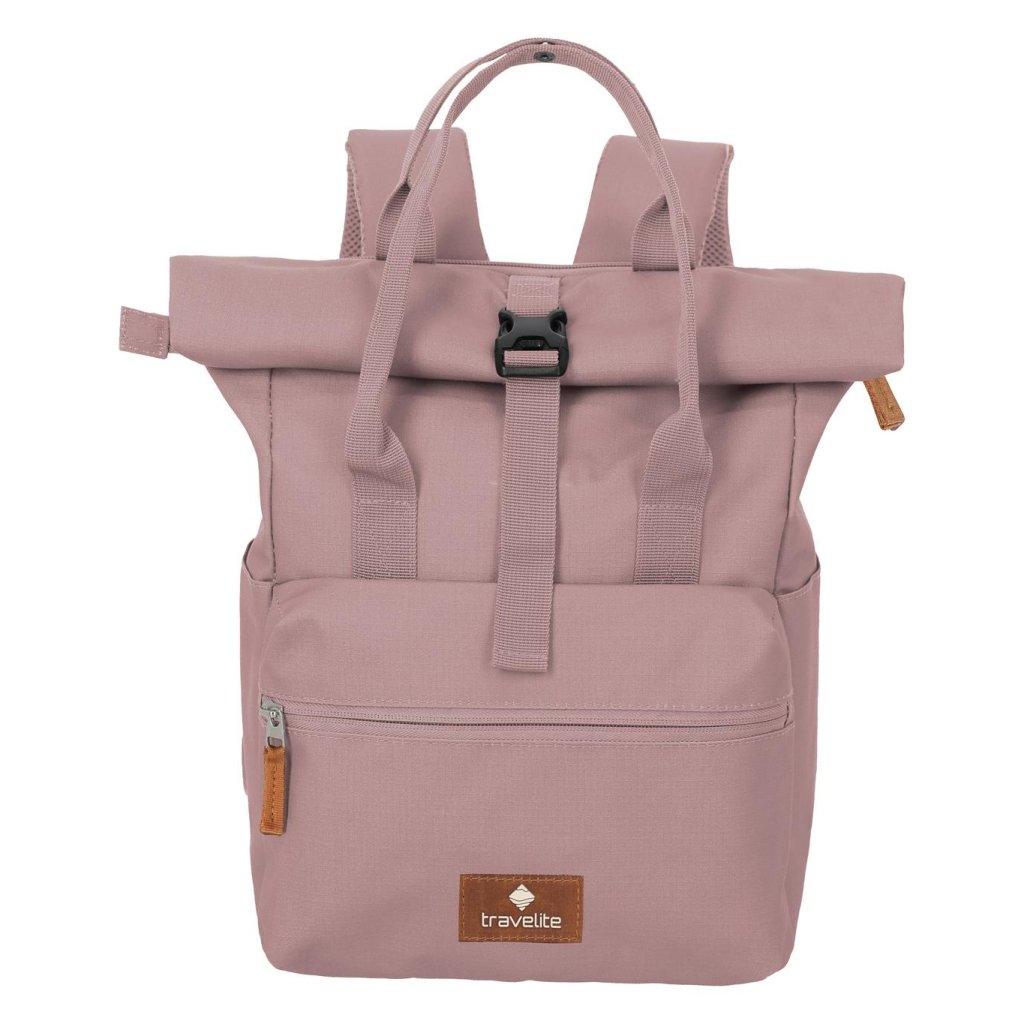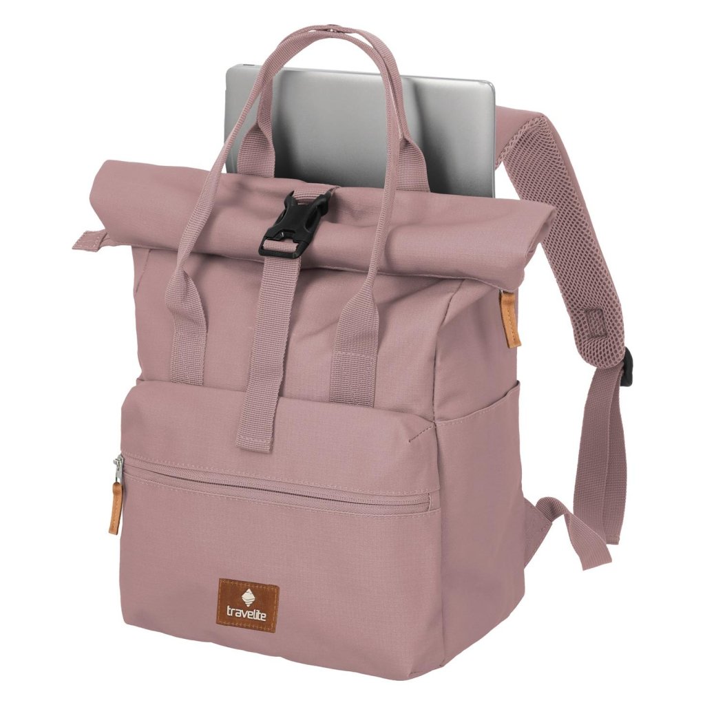 Travelite Basics Short Handle Roll-up Smoky Rose – růžový batoh pro moderní život
